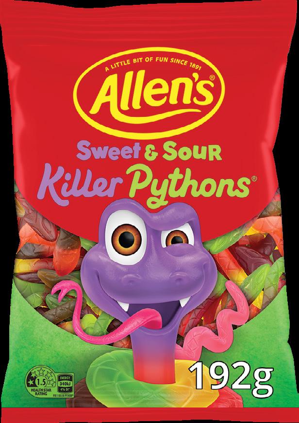 Slithering in with six new killer flavours – Raspberry, Cola, Creaming Soda, Sour Grape, Sour Watermelon, and Sour Lemon – the team behind Allen’s is on a mission to make life a little less sour. With some bites a little sweet, and some a little sour, every bite of the new Allen’s Sweet & Sour Killer Pythons is different from the last. The team at Allen’s believes that fun shared is fun doubled and these delicious sweet and sour delights are perfect for blind taste tests, knot-tying contests and sharing! Allen’s Sweet & Sour Killer Pythons are now available nationwide.