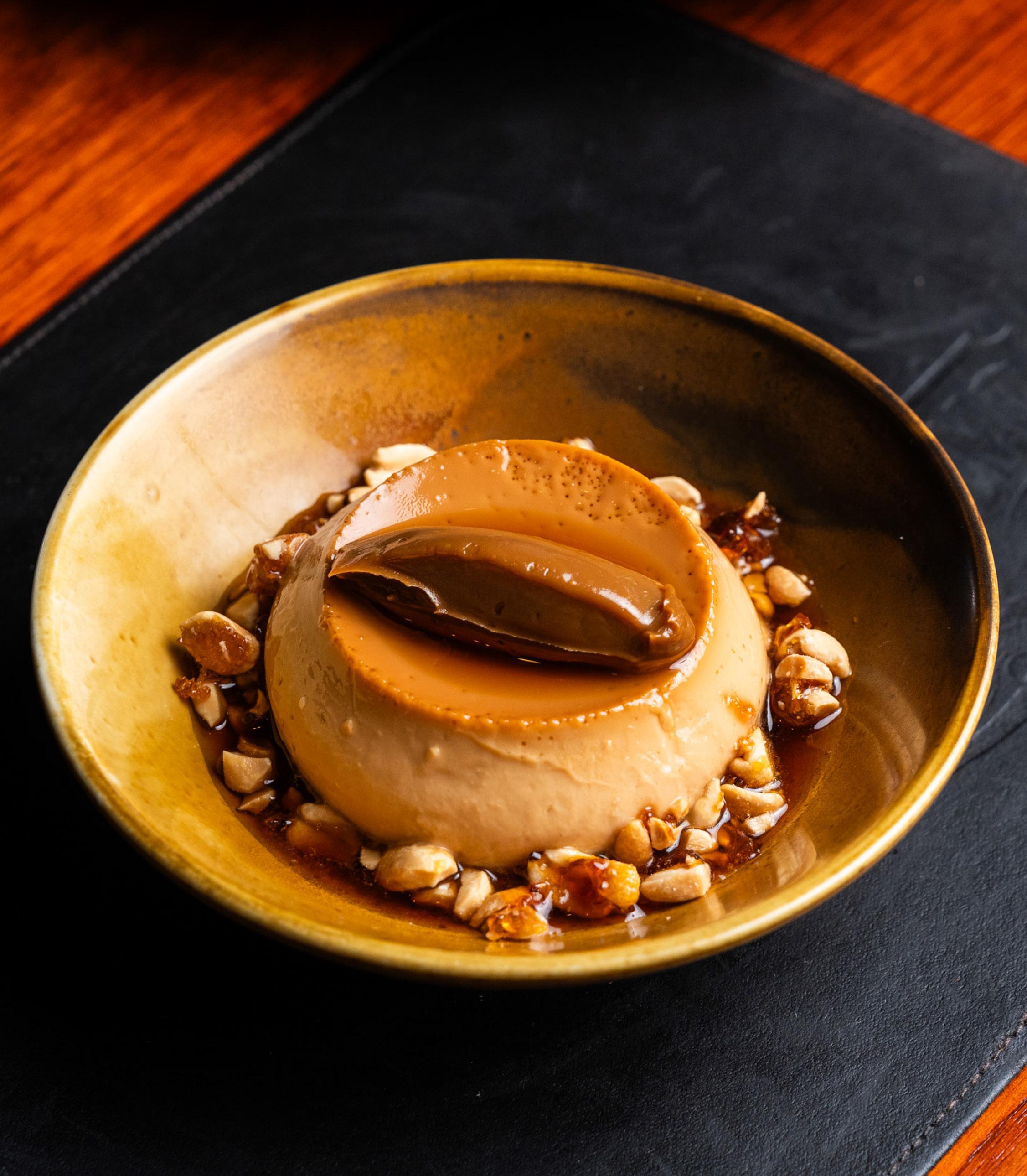 deep, moreish, wok hei flavour.” One of Rivas’ contributions is the arepa, which has been reimagined with smoky eggplant in place of a cheese or meat filling. It’s a dish Saravia thinks will be one of the restaurant’s “most iconic”.