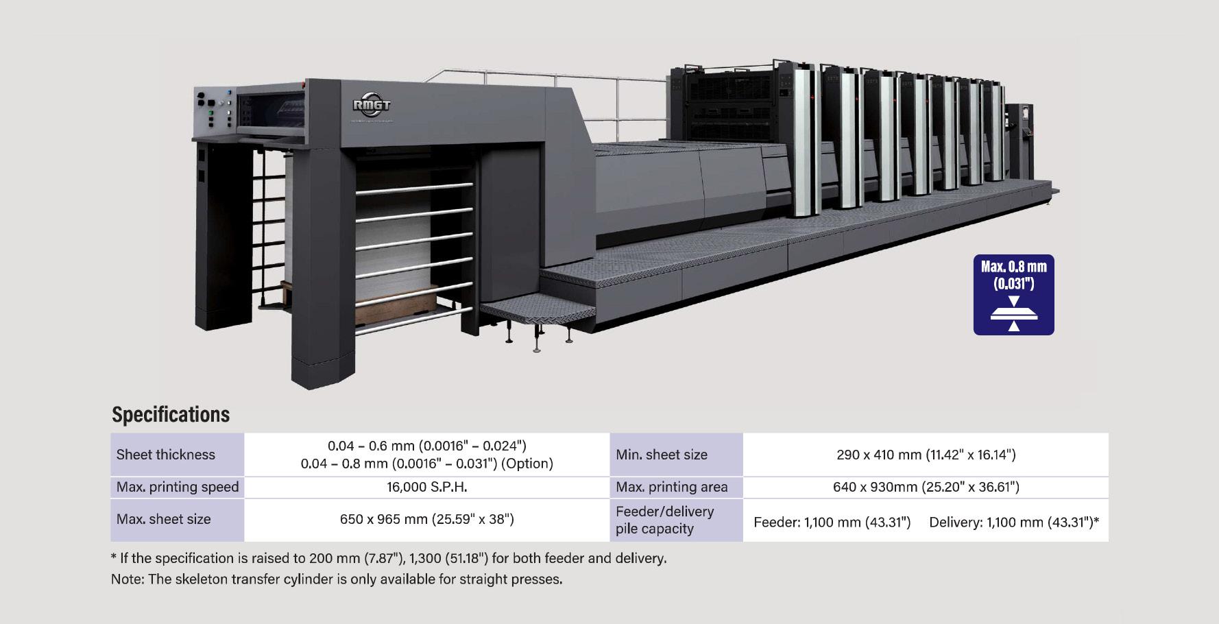 From the feeder, register and printing unit, the press employs RMGT flagship 10 series technology to ensure stable transfer and prevent scratches for a wide range of paper thicknesses.