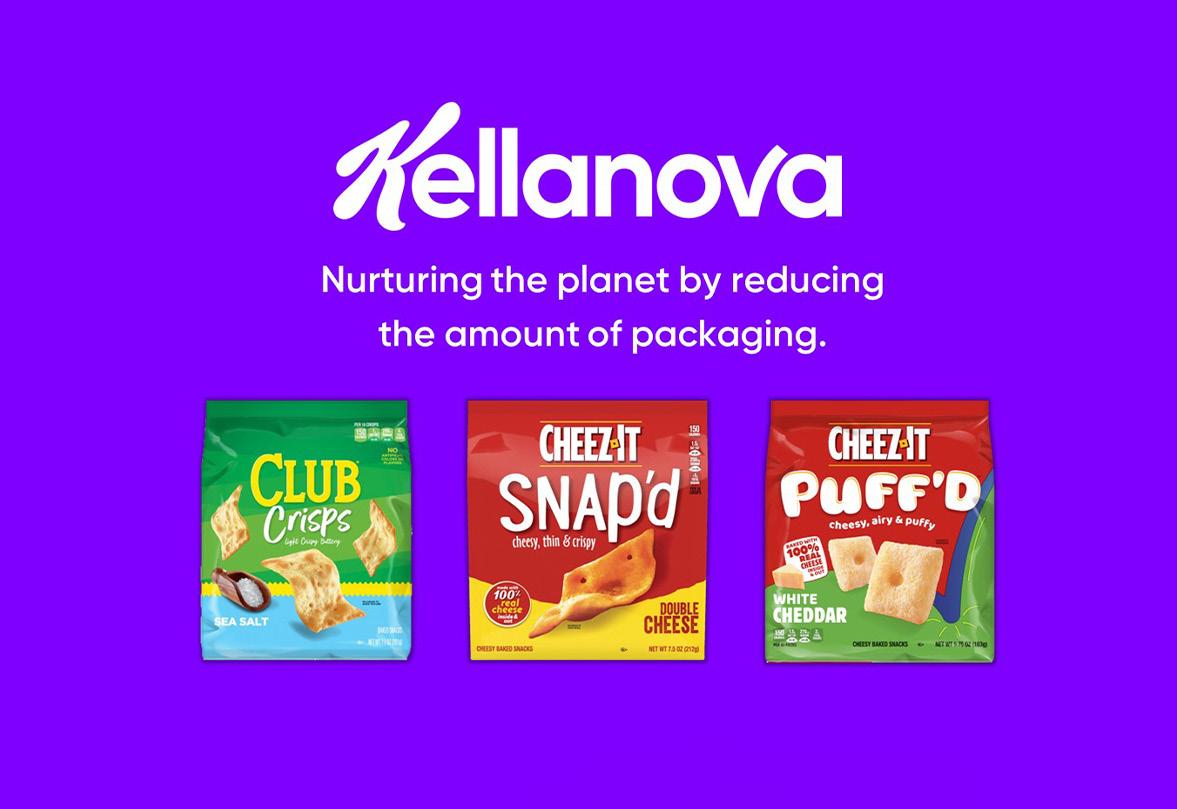 of plastic in the packaging of its brands Cheez-It Snap’d, Cheez-It Puff’d, and Club Crisps, while maintaining the same quantity of food in each package.