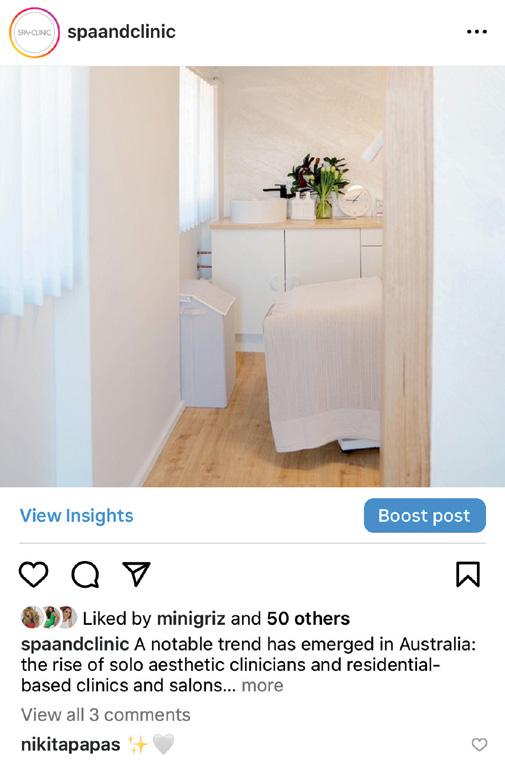 in Australia. In only five years, the device company has established itself at the forefront of innovative technology and has won over many Australian practitioners as loyal brand partners. Read more on page 50. We also look at the changing landscape of aesthetic clinics, with MECCA recently ‘entering the game’ with their MECCA Aesthetica clinics (page 40). Yes, there is more competition than ever, but that just means you have to focus on your point of difference. Demand for aesthetic and wellness treatments isn’t slowing down so there is ample opportunity out there for spas and clinics.