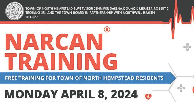 North Hempstead Town Supervisor, Jennifer DeSena and the Town Board are pleased to announce that the town is partnering with Northwell Health to hold a free opioid overdose prevention workshop for residents on Monday, April 8 at 3 p.m. at the “Yes We Can” Community Center, 141 Garden Street in Westbury.