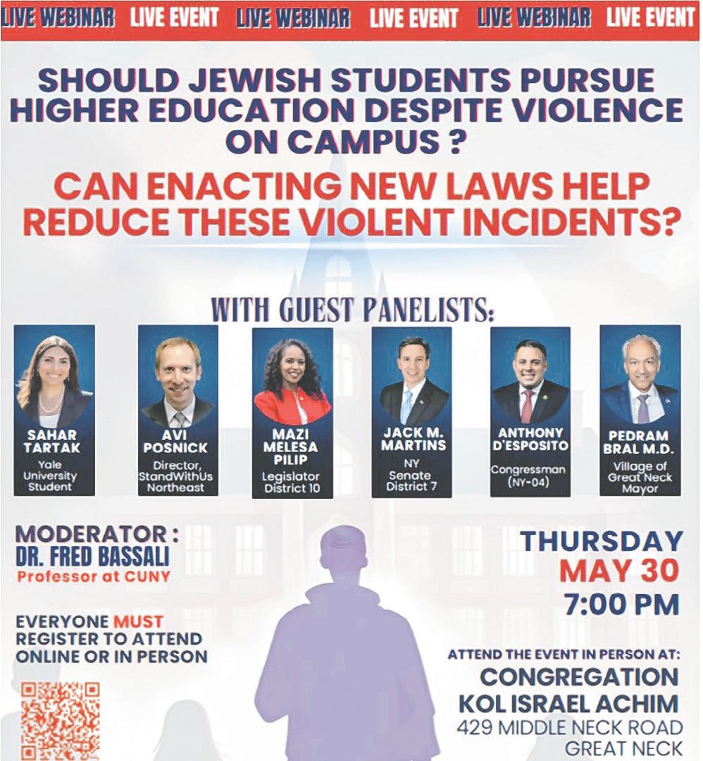 Panelists include Nassau County District 10 Legislator Mazi Pilip (NY10), Rep. Anthony D’Esposito (NY04), state Sen. Jack Martins, Village