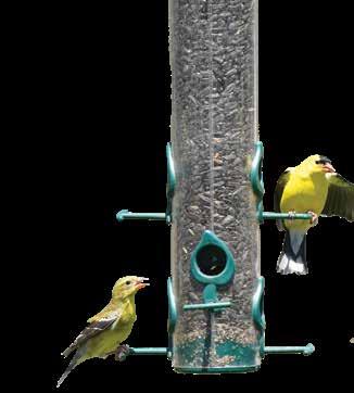 Tube feeders will attract an array of birds. They are cylindrical in shape with various ports to enable birds to perch and feed.