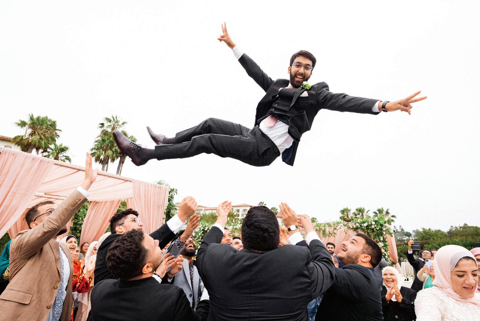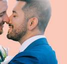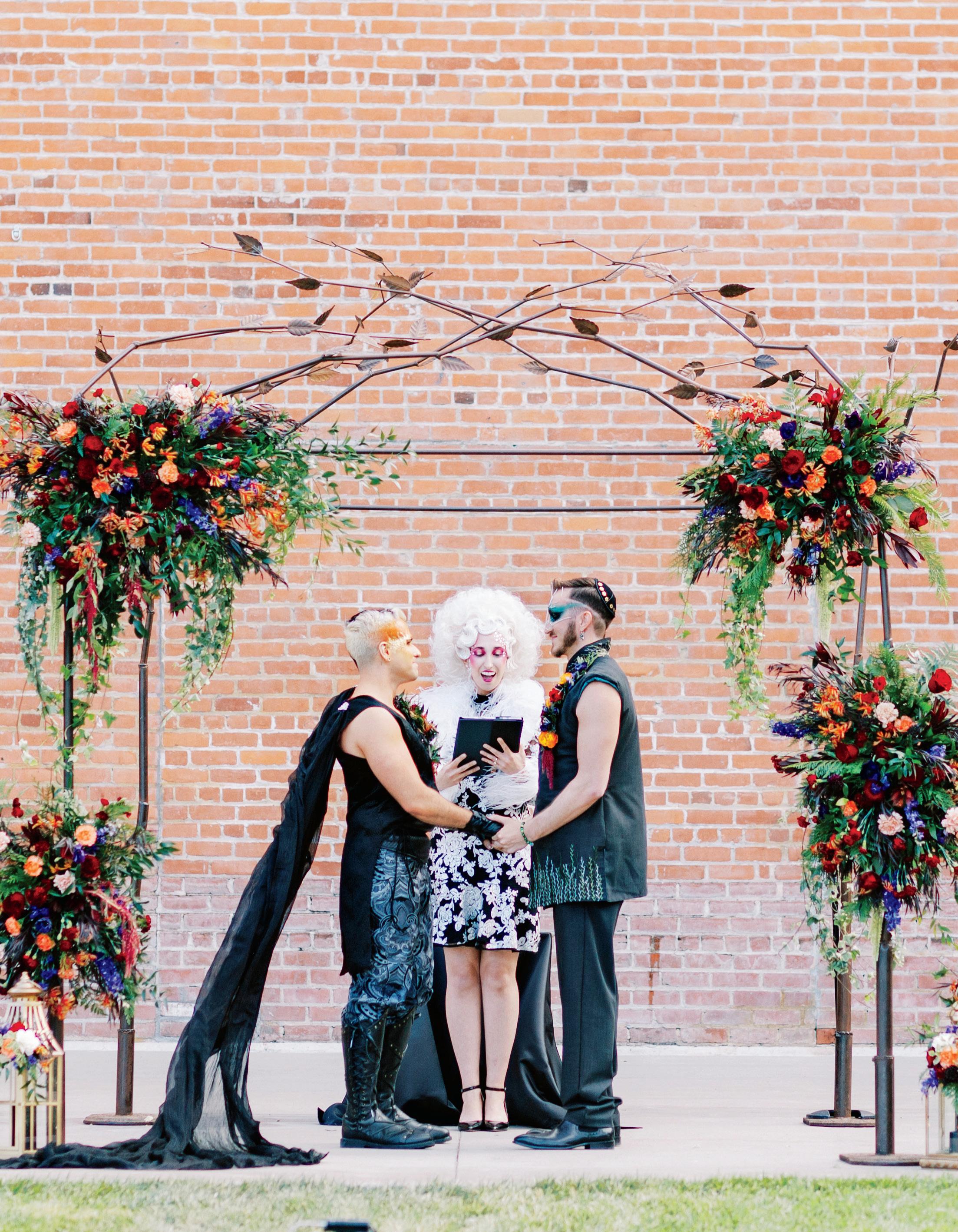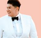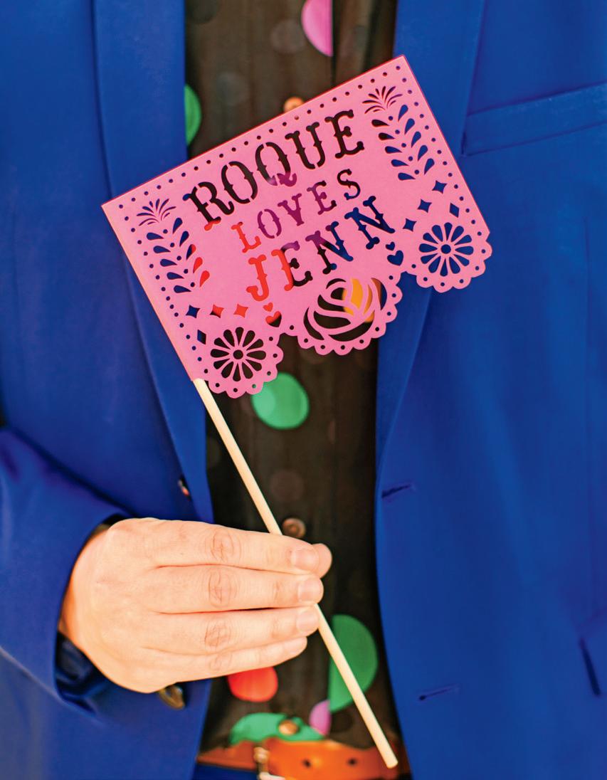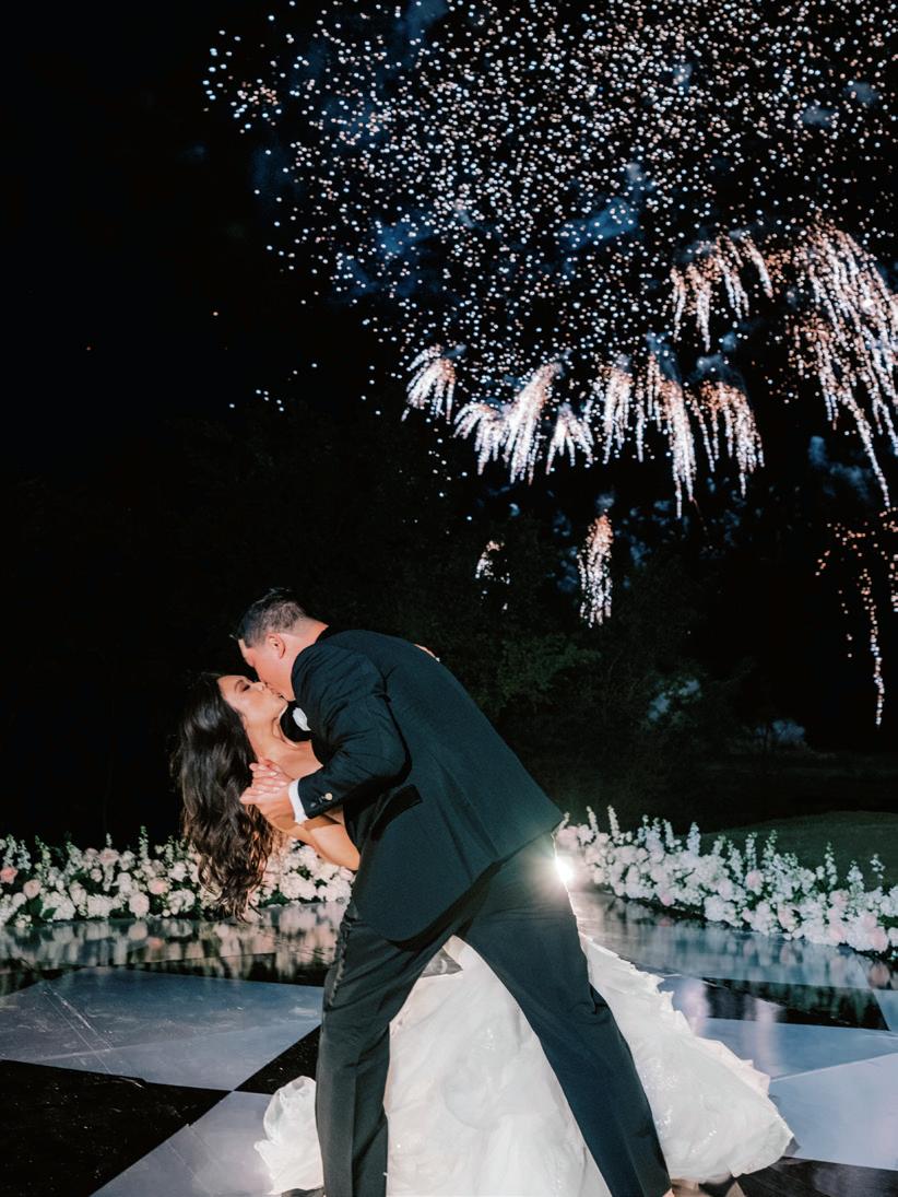 For our send-off, we wanted to honor Pride Month and the seventh anniversary of the Supreme Court ruling that legalized same-sex marriage. To do that, we dressed in attire that aligned with the colors of the transgender flag. Our wedding party shot off smoke cannons in the colors of the Pride flag, and the rest of our family and friends had bubble shooters. We loved including the people most important to us in our exit!