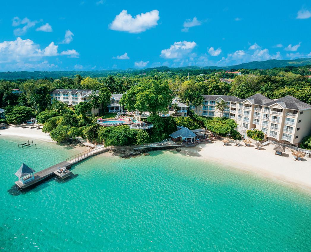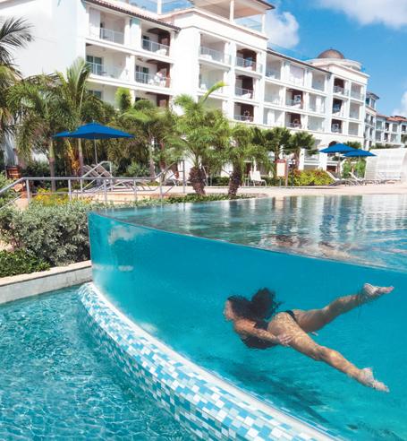 Cl assic Georgian architecture welcomes you to a place reminiscent of the grandest British manor houses. At the main resort, the noblest of British refinement blends with Jamaican charm. Feast at nine tantalizing gourmet restaurants including an authentic British pub. Enjoy Jamaica’s very first Over-the-Water Villas, with water hammocks and private infinity pools. Then discover the resort’s exotic private island with a Thai restaurant, secluded beach and Red Lane® Spa Escape. Guests who stay here can also play at Sandals Montego Bay!