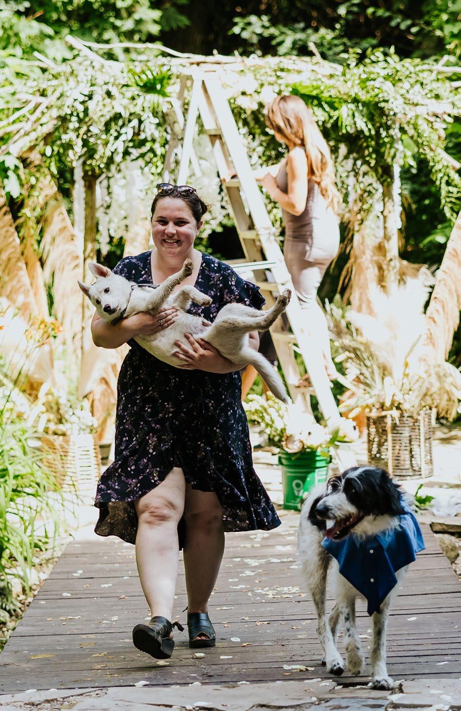 THE MAGIC MAKERS, dog parents and masterminds behind the scenes of this styled dog shoot are Holly and Trent Sluiter of Fedora Media, and Jaime Silk, owner of Erin Estate Weddings and Jaime Silk Flowers in Erin, Ontario. During the pandemic, they missed their engaged human clients and working on weddings so much that they staged this amazing dog wedding to keep the creative juices flowing and find a little joy with their best buds on the beautiful grounds at Erin Estate. Cheers to all the dogs out there for providing companionship and cuddles during a difficult time for humans.