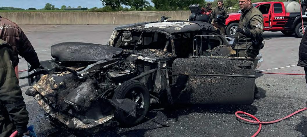 nderstandably, devastating horror and trauma were paramount in the initial aftermath of the incident that beset Graham Smith during Santa Pod’s Main Event in May. Graham was making a pass in the Bad Apple Racing Grimhilde ’57 Chevy when the car caught alight. Amazingly, considering the severity of the fire, Graham was given the all clear after a few hours of tests and observation at Northampton Hospital.