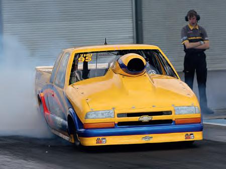 Things are about to get loud at Melbourne Raceway, as on 12-13 July jet-propelled vehicles will be spooling up their turbines to unleash smoke, fi re and thunder. The UK’s formidable jet exponent and BDRHoF member, Martin Hill, will be back in his homeland, where it all began, with one of the FireForce cars. Accompanying him will be Julian Webb’s ear-splitting kids’ favourite Spiderman and Lee Dennick’s Mini Pro Jet Funny Car Reign of Fire (pictured).