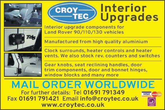 believe in a one to one service with a considerable saving to your pocket compared to that of a main dealer. www.a1british4x4.co.uk BRITISH 4X4 SPECIALISTS Tel. 0161 7634300 Unit 4, Fernhill Street, Bury, Lancashire, BL9 5BG Land Rover is a registered trademark of JLR Ltd The Landy_2023_04_April_A1 Independent British 4x4_QP.indd 1 21/02/2023 12:17