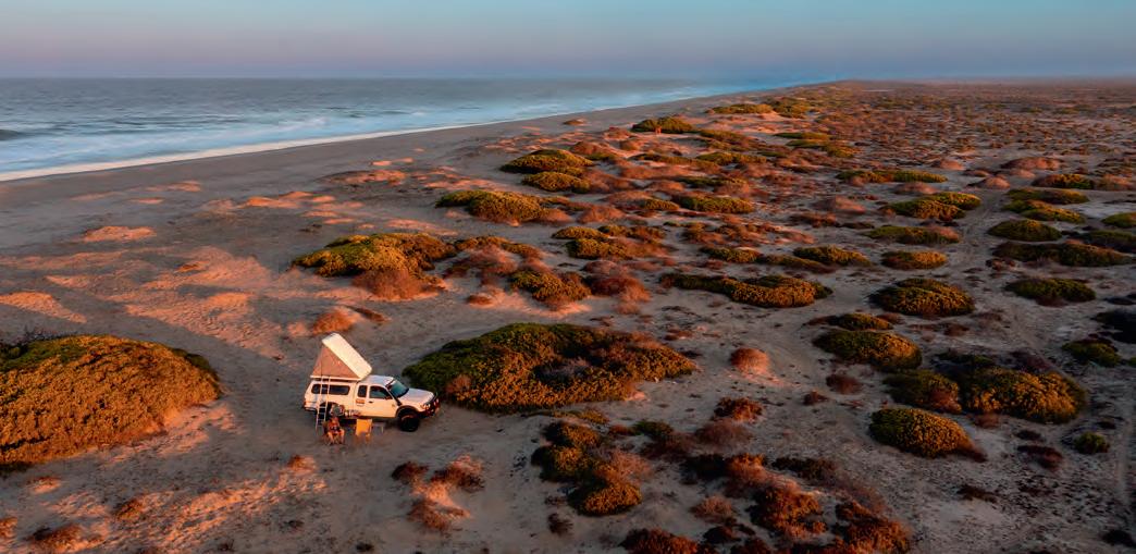 Although I’ve never had a security issue in my 30-plus years of travelling in Baja, my standard practice is to camp out of sight from any road – even one with zero traffic. Meandering through the salt grass and dunes, we found a sandy clearing near the beach, popped up the roof tent and set in for a spectacular tequila sunset.