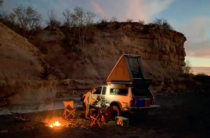 Left: Good overlanding practice is to locate a good camp, collect wood for a fire and have dinner on the grill an hour before dark