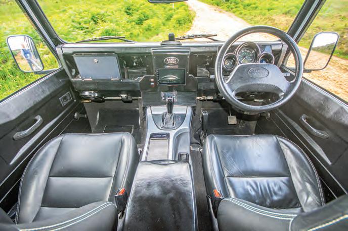 bought as Genuine Parts from Land Rover itself (that thing you can hear is your wallet begging for mercy) then had the vehicle resprayed in Stealth Grey and Piano Black. He’s also added a variety of cool stuff in the shape of Fire and Ice side steps, an RDX front bumper and grille, custom rear side glass and a black tinted rear window. All the lights, including the headlamps, have been changed to Wipac LEDs. All this has been achieved without making it look like a lost-cause bling machine; rather than something outrageously low-profile, the vehicle wears a set of black Disco alloys by summer and Wolf rims with large mudterrains in the winter.