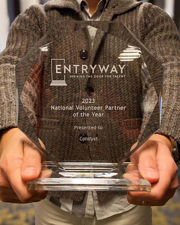 Speaking of awards, recognition also came in another form — the announcement of Catalyst as Entryway’s 2023 National Volunteer Partner of the Year. Our team has been privileged to partner with Entryway for more than six years, and when they began talks of a strategic rebrand at the start of 2023, our team immediately jumped in. In this issue, you’ll discover more about the details of this transformational project, and I