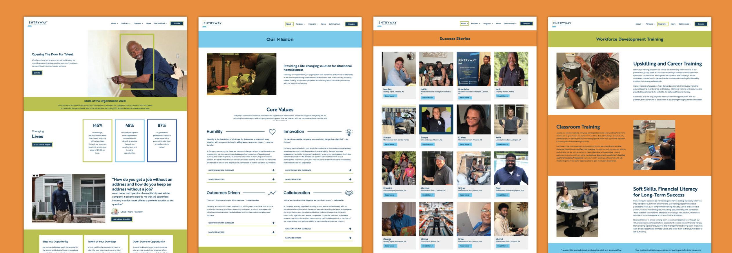 From extensive name research and logo design to foundational brand collateral, a new website design, and more, the new identity reflects Entryway’s forward-thinking growth and momentum while also remaining true to their mission of providing a life-changing solution for situational homelessness. We’re grateful for this recognition and so excited for the future of Entryway! Click below to learn more about the full rebrand and reveal process.