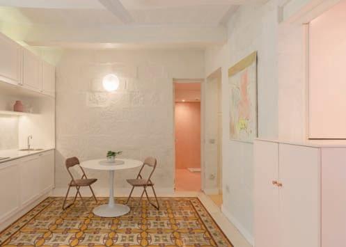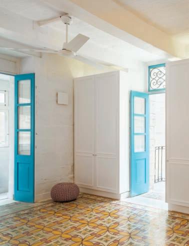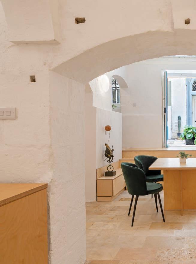 “We used special restoration dehumidifying plasters on the ground floor level so that the walls could be painted in white to brighten up the space,” Elisa Grech says. Maltese hardstone, traditional pa erned cement tiles and timber floors were installed throughout, and the use of “honest” materials like birch plywood, the conservation of the existing Maltese hardstone and Maltese tiles contributed to keeping the project within budget without compromising on design.