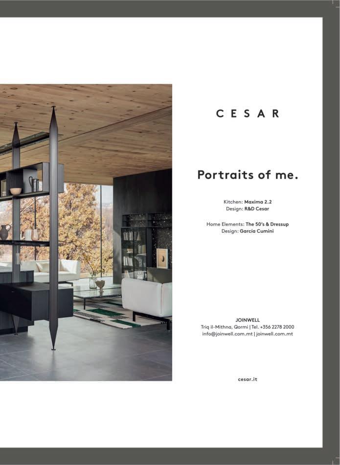At the Joinwell showroom in Qormi, a er months of studying and discussing the local furniture sector, CESAR and JoinwellFxb have chosen to display CESAR’s UNIT, MAXIMA 2.2, TANGRAM, and THE 50’S kitchens. Innovation, clean lines, versatility, and functionality within contemporary and elegant styles are but just a few of the features one can see and touch before proceeding to customise them to one’s own space and functional requirements. CESAR’s local customers, and their own interior designers, then have JoinwellFxb’s vastly experienced design team, fully backed by CESAR’s design and technical teams, looking forward to helping them create their unique and dream kitchen. n