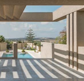 “This villa is from the early noughties,” the architect Steve Risio says as he looks through several photographs. “It sounds recent, but that was a couple of decades ago,” he adds with a smile. Originally, this was one large house, later divided into four – 2 pairs of semi-detached villas, one pair each for two sisters. The buildings sit near the crest of a hill overlooking an expanse of open countryside. In the distance, there are views of the sea, marginally blighted by the haphazard lines of coastal development. The villa Steve talks about serves as the owners’ family home. A racted by the be er views, they wanted to move in from the house next door, planning to let out their current home to tenants.