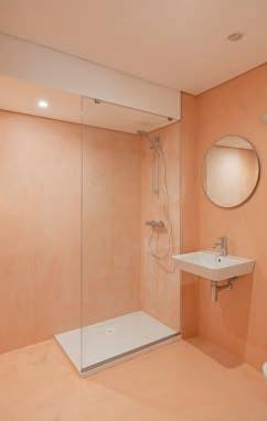 f Colour accents define the functional spaces in both units. Sanitary fittings supplied by Satariano complete the look in the bathrooms in both the green and pink units.