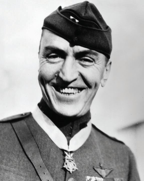 BORN in Columbus, Ohio, Rickenbacker’s fame came early. He became a race car driver at the age of 19 and successfully competed in well-known races, like the Indianapolis 500, from 1910 to 1917. He joined the American Expeditionary Forces in 1917, and his first assignment was to serve as a driver for Pershing. While in Europe, he often drove for members of Pershing’s aviation staff, which led to Rickenbacker’s eventual training as a fighter pilot in Tours, France. During the war, he secured 26 aerial victories, the most of any American pilot. Rickenbacker received the Medal of Honor in 1931 for his impressive service.