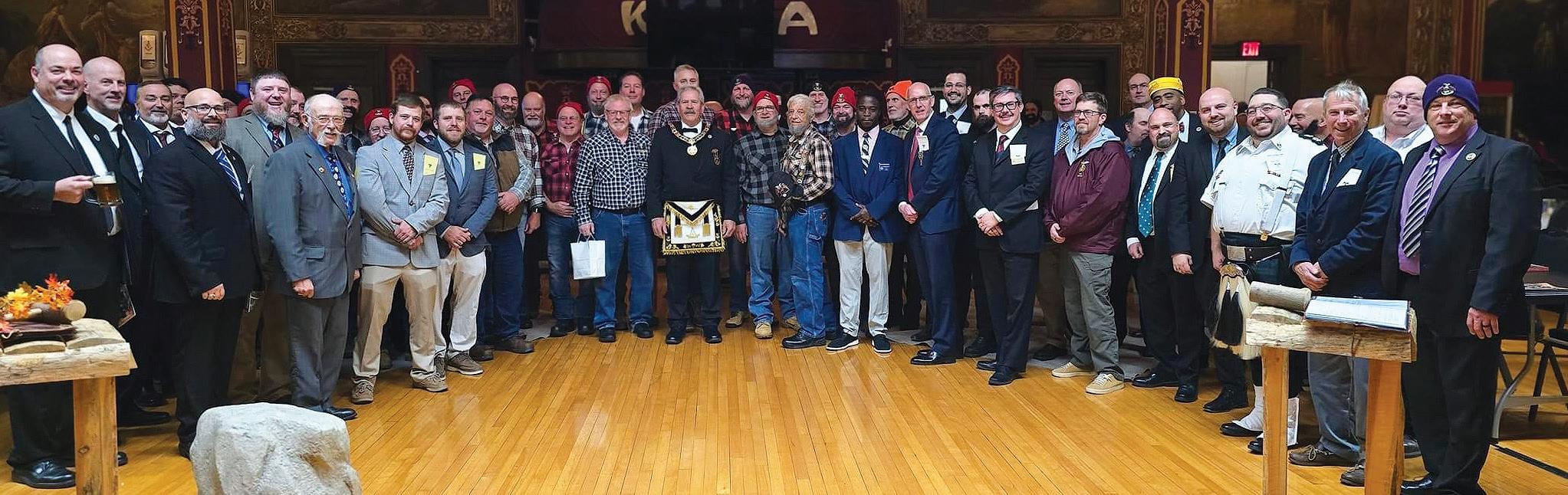 On October 19, Maine Scottish Rite and Shrine joined forces for a one day class at Kora Temple. Massachusetts Consistory was on hand for their excellent version of the 22nd degree, Prince of Libanus. Thirty-nine Brothers became Scottish Rite Masons that day!