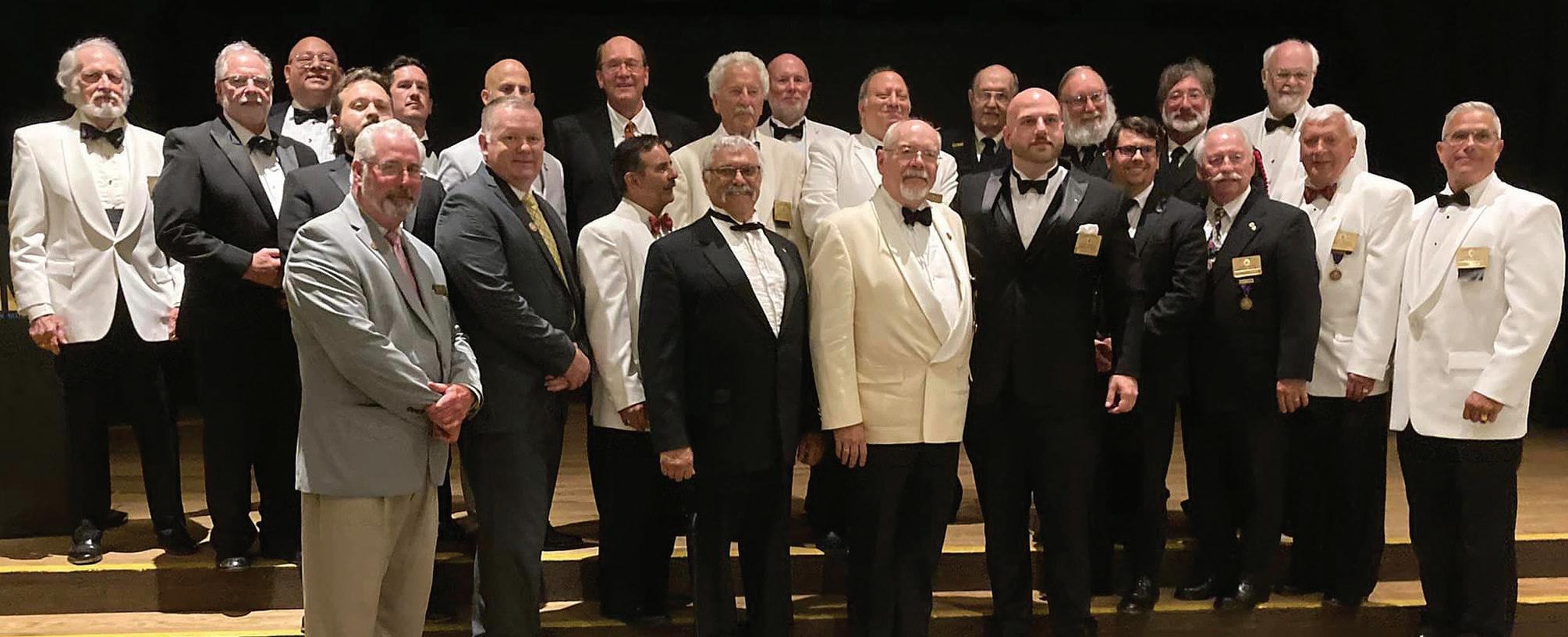 (l to r) Bro. James F. Fergola, 32° MSA, HGA; Bro. Christopher P. Gugger, 32° MSA; Bro. Daniel E. Burns, 32°; and Ill. George H. Kopps, 33°, MSA. Not pictured: Bro. Donald R. Walker, 32°.
