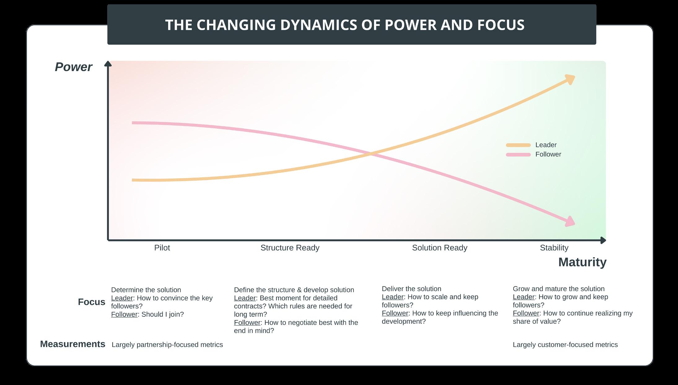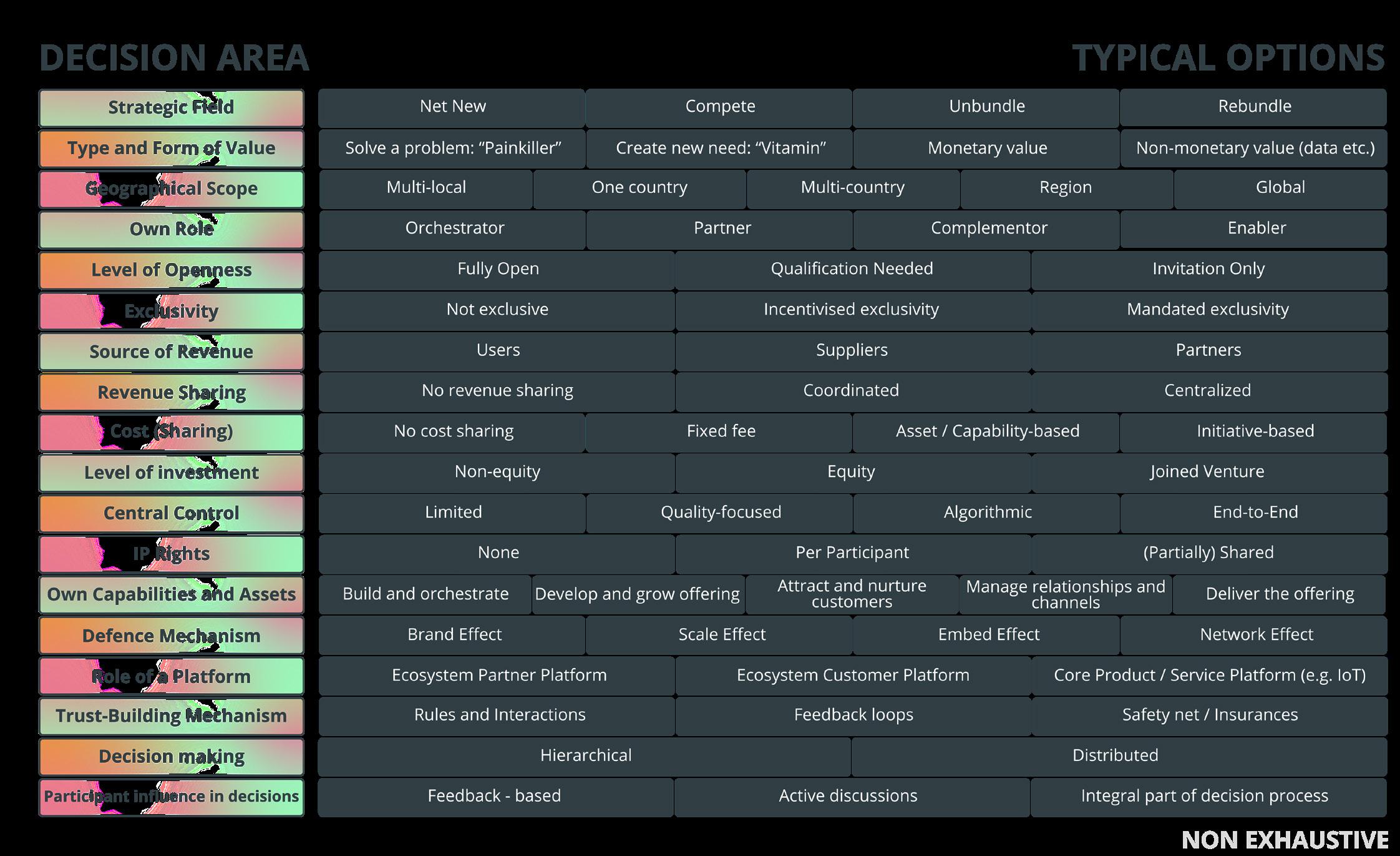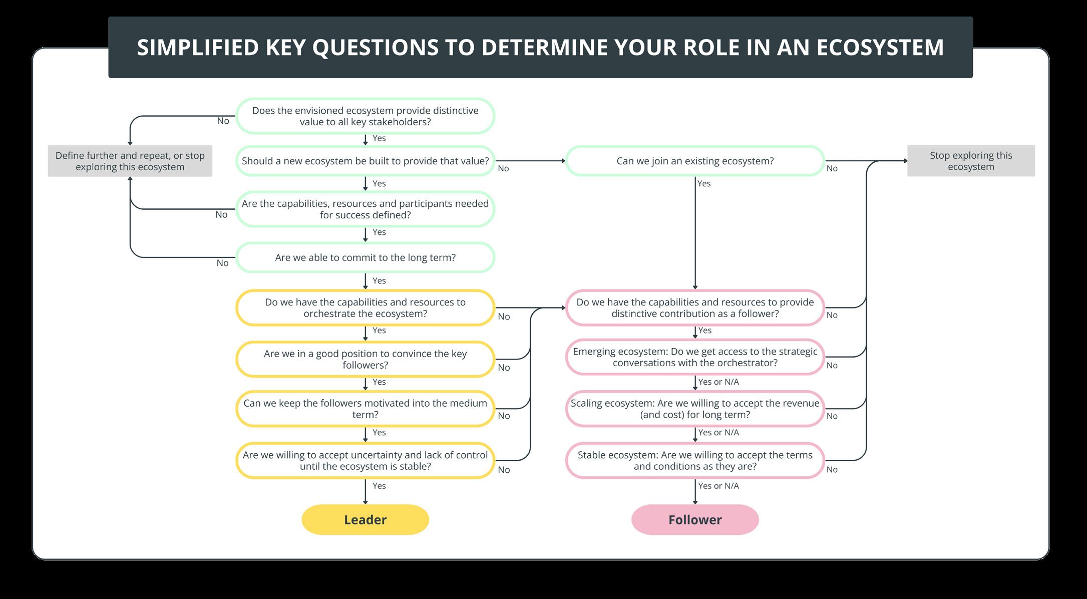 Navigating the decisions and dynamics of ecosystems can be overwhelming. Not only are conscious choices needed, companies also need to be prepared to evolve and change the decisions. Clear set-up and rules, true dialogue with partners, and well-timed agreements on key challenge areas like decision-making, revenue sharing, data and intellectual property rights increase the likelihood of maintaining the best partners and achieving success.