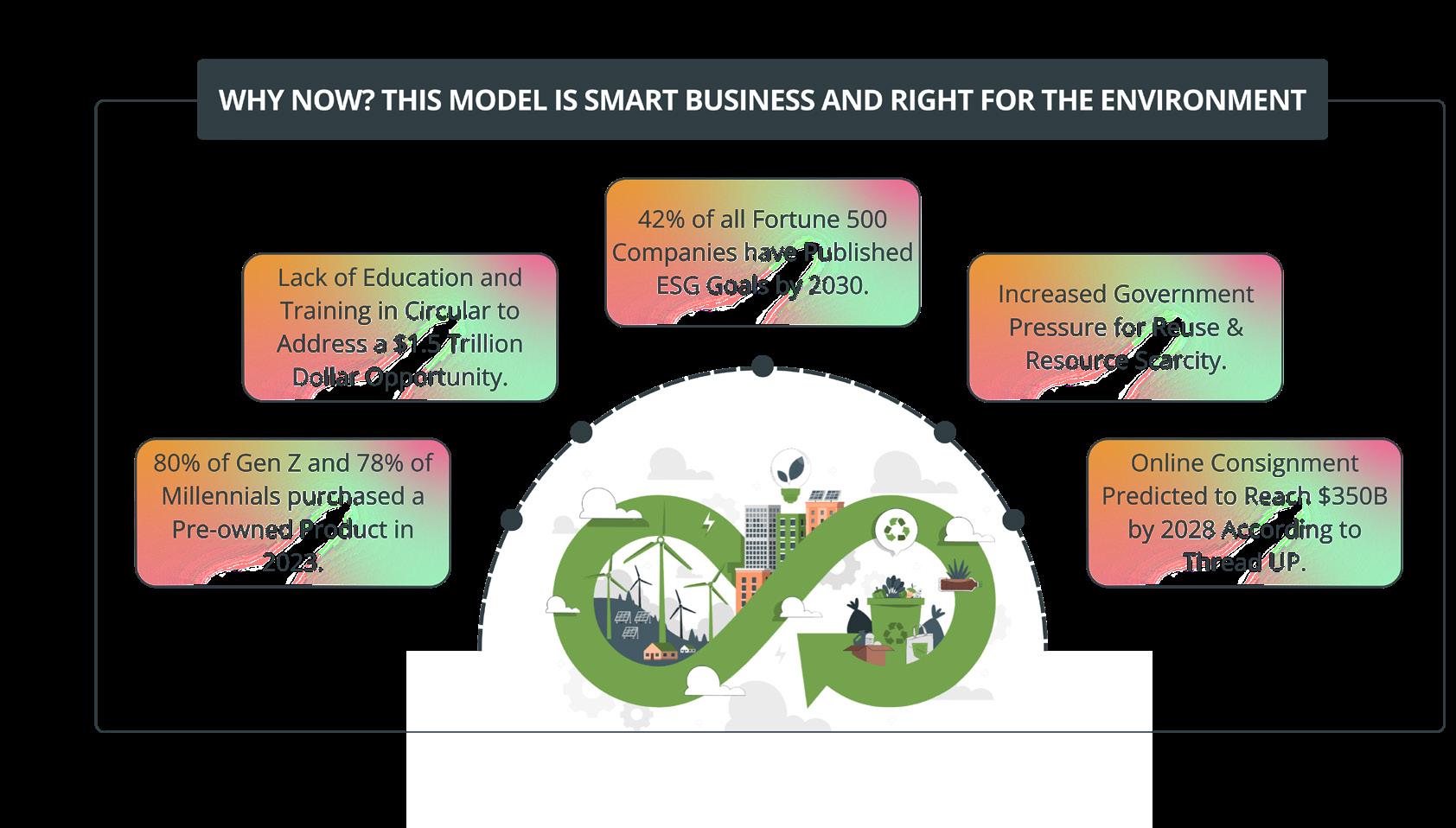 The circular economy has emerged as a powerful megatrend reshaping how businesses and societies approach production and consumption. This transformative model represents a fundamental shift away from the traditional linear “take-make-waste” approach toward a more sustainable, regenerative system. This megatrend has gained widespread traction over the past decade as governments, companies, and consumers alike recognize its potential to tackle pressing global challenges like climate change, biodiversity loss, waste, and pollution. Evans noted that this trend is giving rise to “circular platforms.” He indicated that there are now 70 circular marketplaces operating in Europe today, with more likely to come.