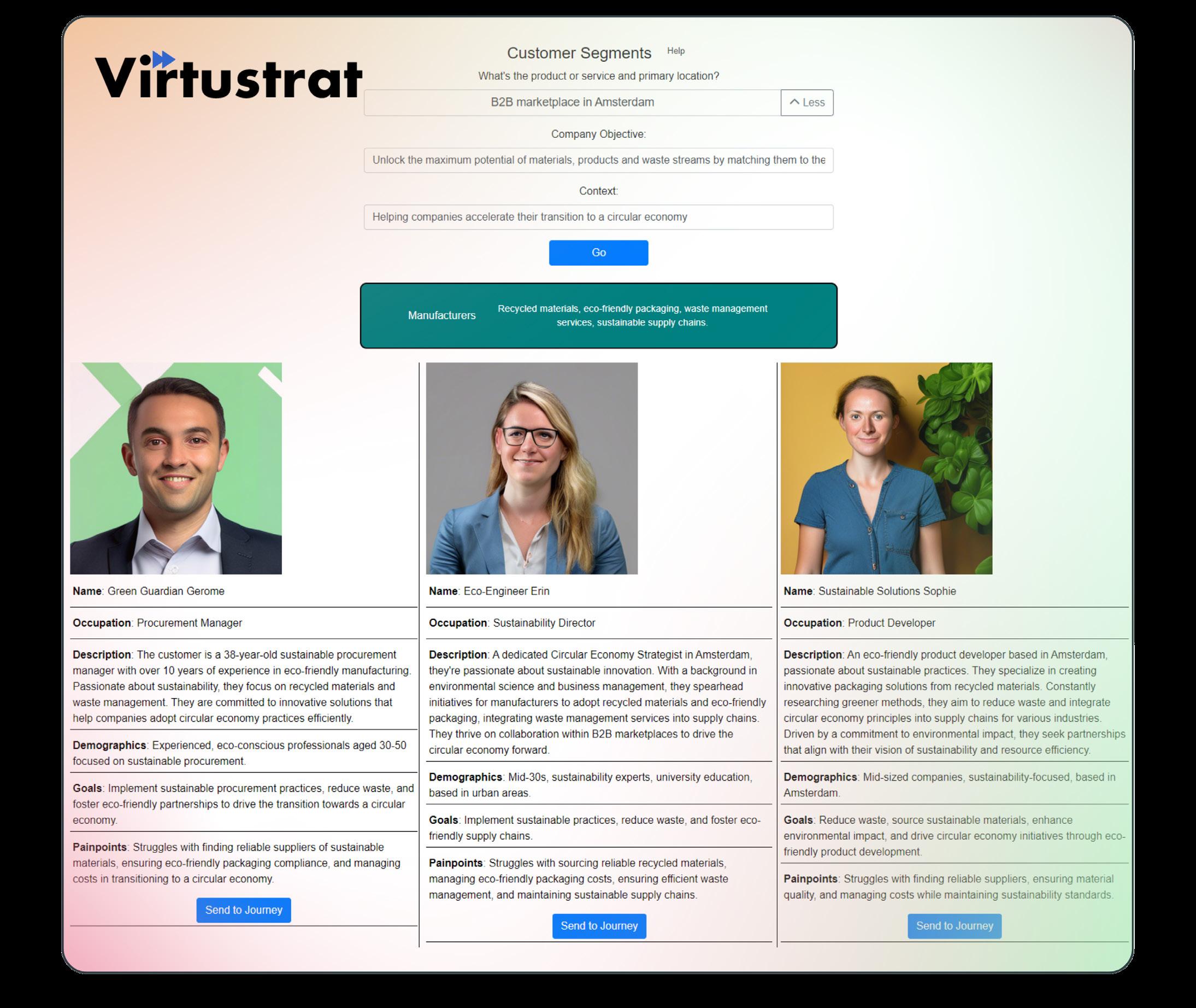 Flying Rhino Studio’s journey began with a brainstorming phase involving the corporate partner: they worked with an SMB in France, holding workshops with the board and key team members. This intense collaboration led to 32 different business ideas. After careful consideration, they picked one to move forward with. This method ensured that the chosen idea was solid and had potential in the market.