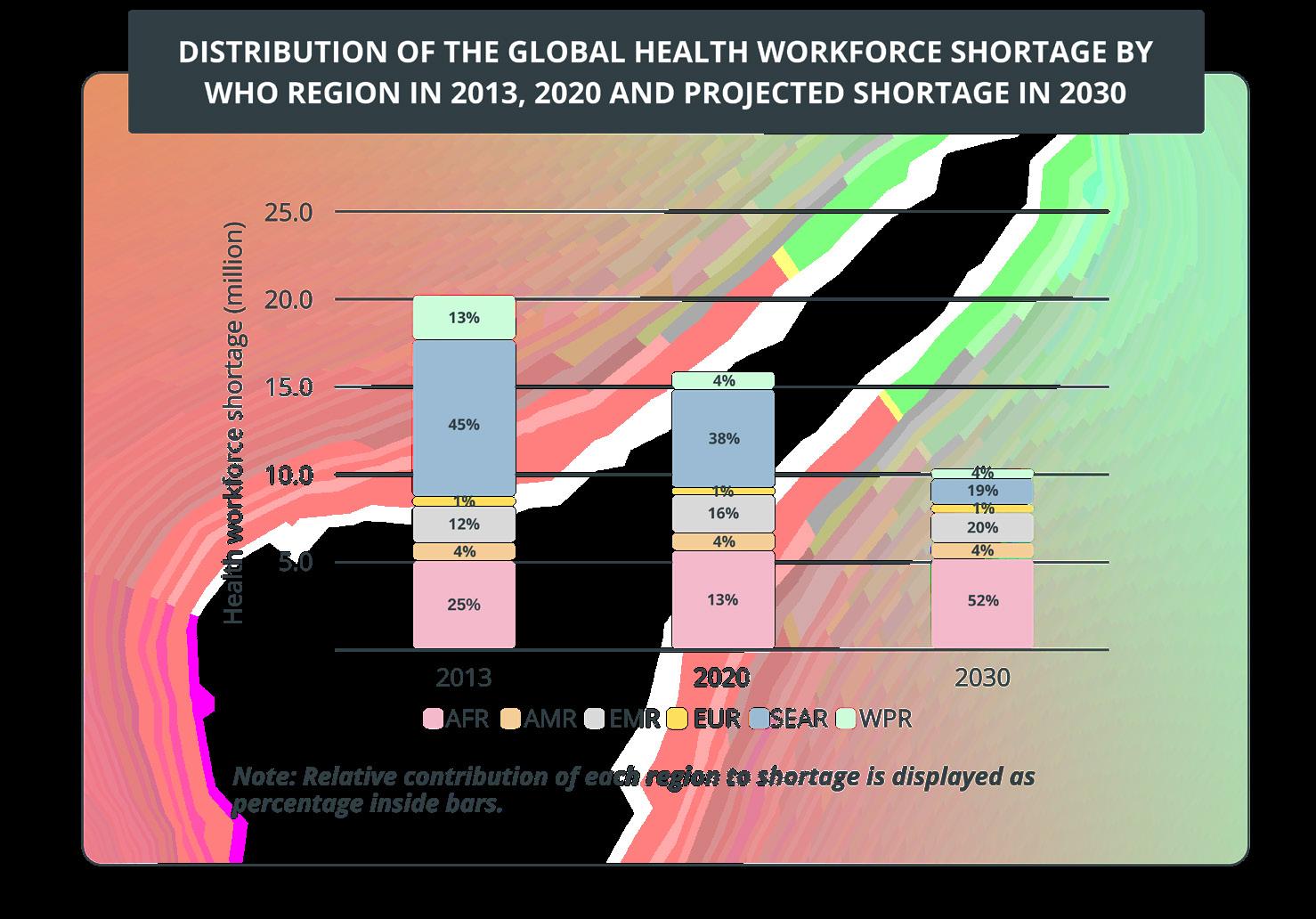 Fig. 15 - Source: “Distribution of the Global Health Workforce Shortage By Who Region in 2013, 2020 and Projected Shortage in 2030” Boniol M, et al. BMJ Global Health 2022; 7:e009316. doi: 10.1136/bmjgh-2022-009316