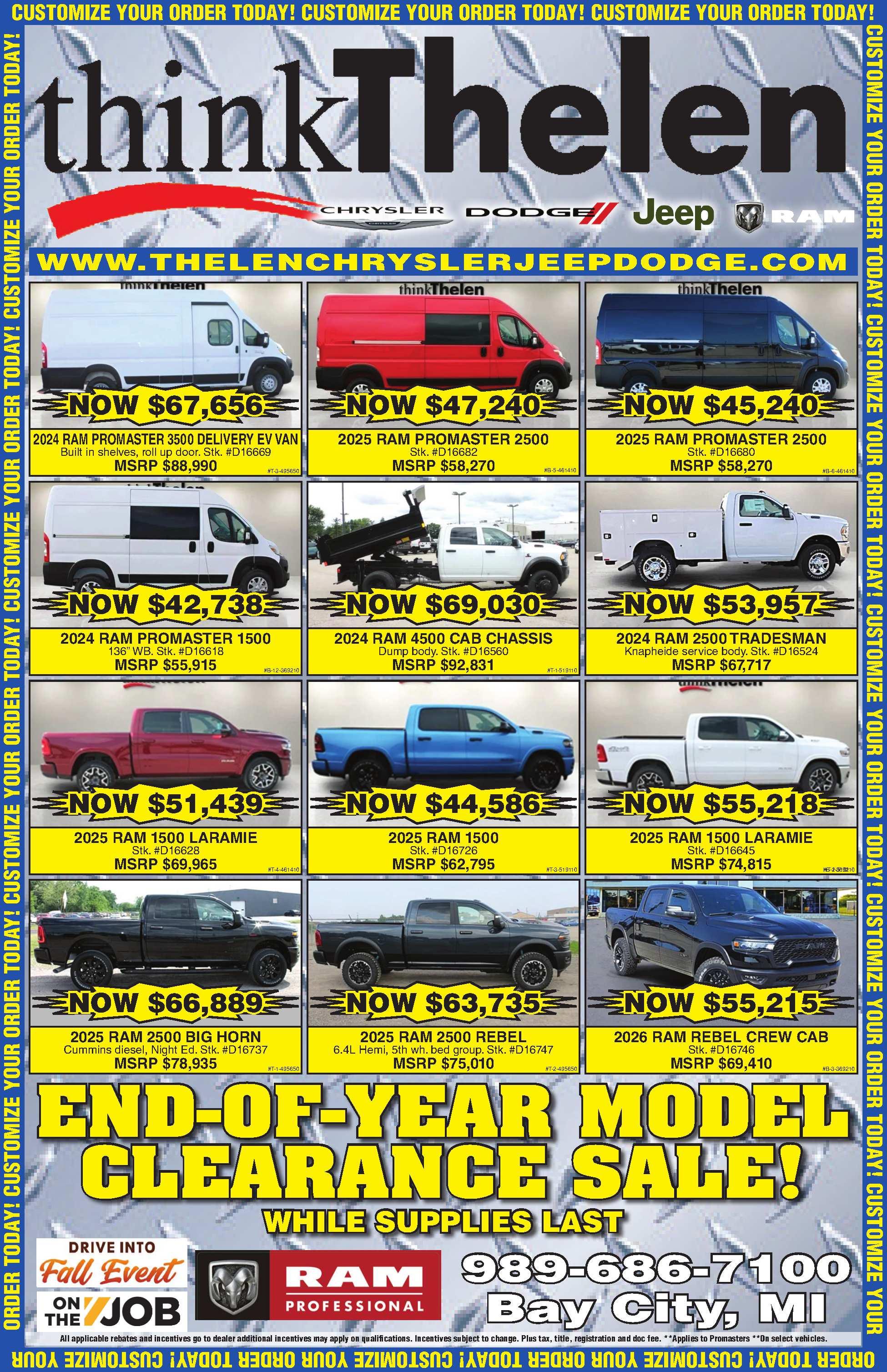 2015RAM2500. 6.4LV8,4x4,camefrom Nevada,norust,veryclean,newtires, fullyservicedandreadytogo.2to choosefrom.Startingat$19,000.ABK Motors,ByronCenter,MI. www.abkmotors.com 616-277-8604 517160