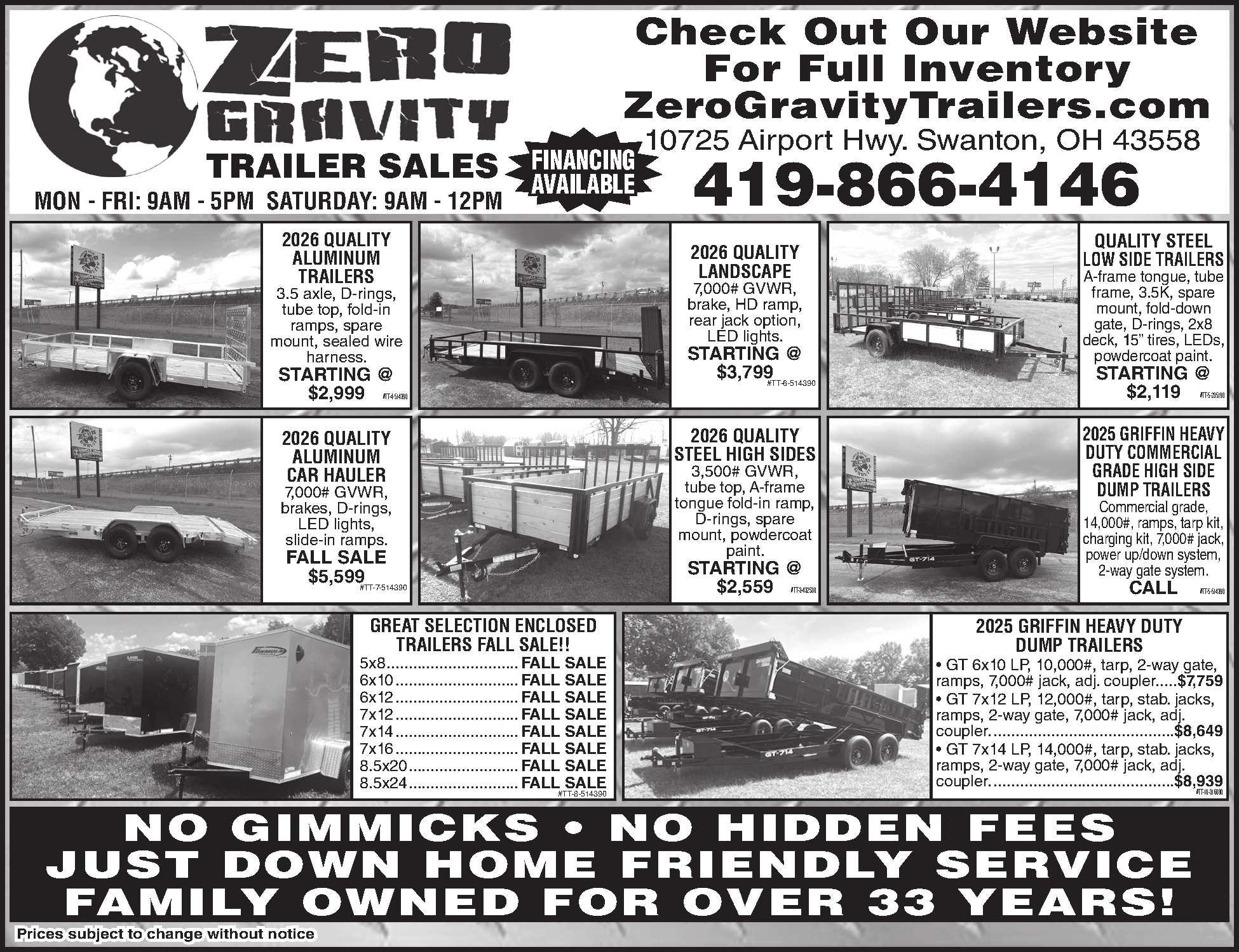 2024UNITEDTRAILER. 7x16,7000#GVW,7’interior, rearcargodrs.$7,765.Frankfort,IN. 765-652-0795C,765-249-2990 518440