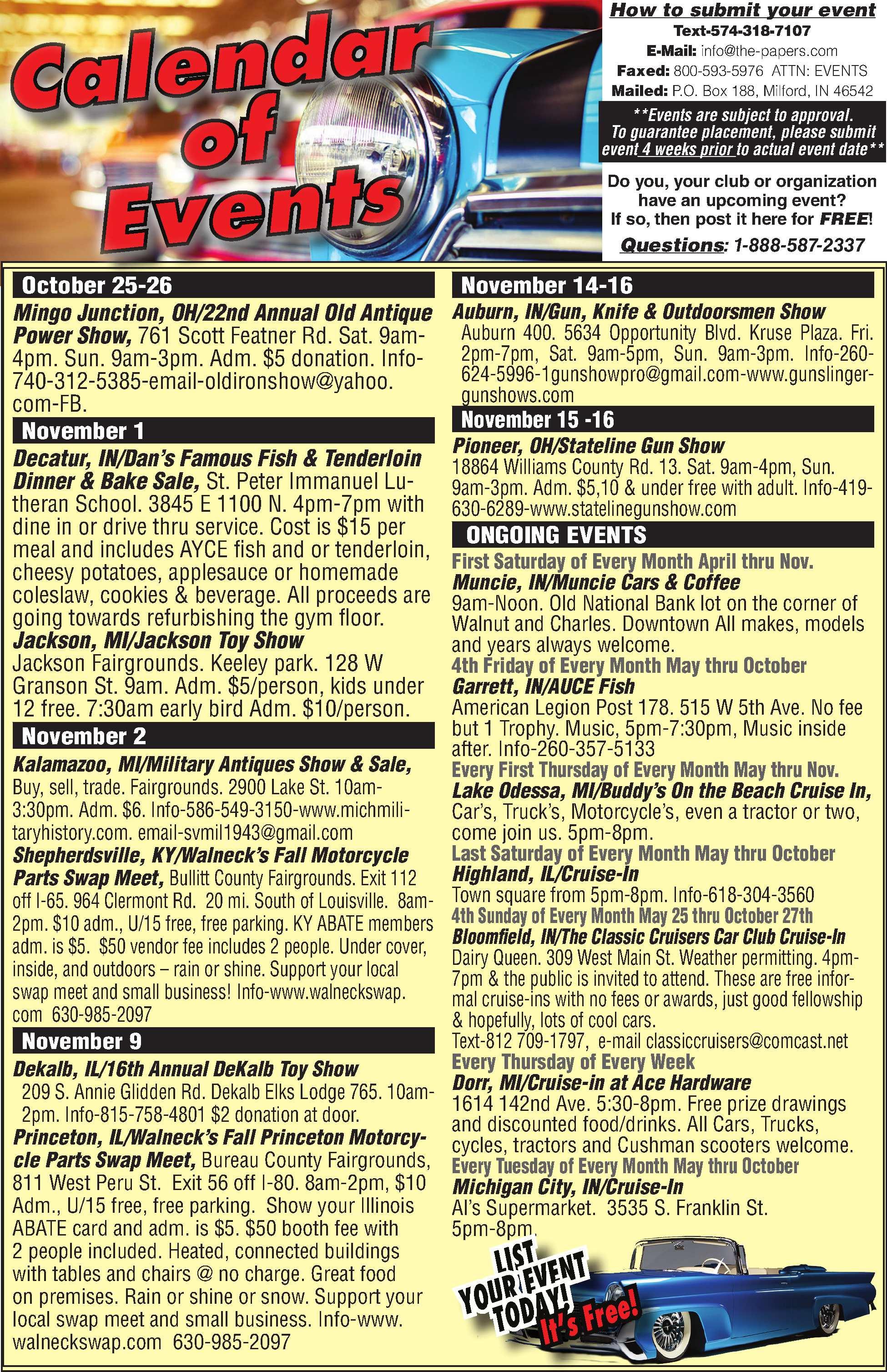 WEAREAFULLLINERESTORATION PARTSSTOREFOREARLYCAMARO, CHEVELLE&NOVAS. Sheetmetal,bumpers, moldings,carpet,interiors,rubberseals&much, muchmore.Alwayslookingtobuyprojectcarsor partscars.Stopbyourstore,open6daysaweek: M-F9a.m.-6p.m.&Sat.9a.m.-1p.m.Locatedone halfmileEastofLucasOilRacewayPark. Freeman’sMusclecarMotorsports,10747E.US Hwy.136,Suite101,Indianapolis,IN46234. email:clarencefreeman@att.net 317-328-8360 376120