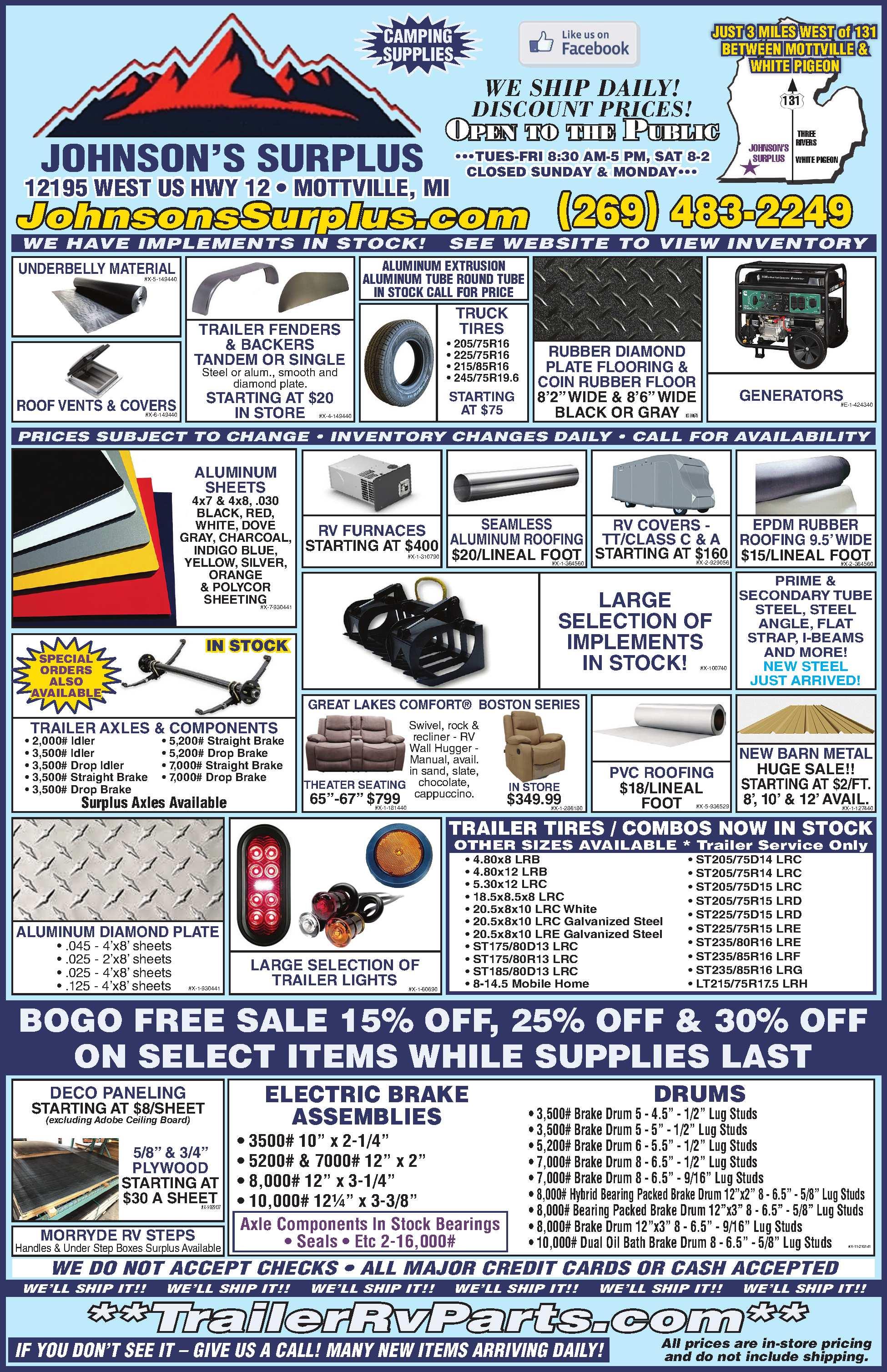 OUTDOOREQUIPMENT-YOUPULLFORPARTS. Lawnmowers,generators, implements.Bringyourtoolsandcheckthemout.Wehaveahugeselection,butdonot inventoryourpartsormakes&models.ForavailabilitystopintodayatLightTruckParts, 1811LakeSt.,Kalamazoo,MI.269-381-2300,www.ltpkz.com