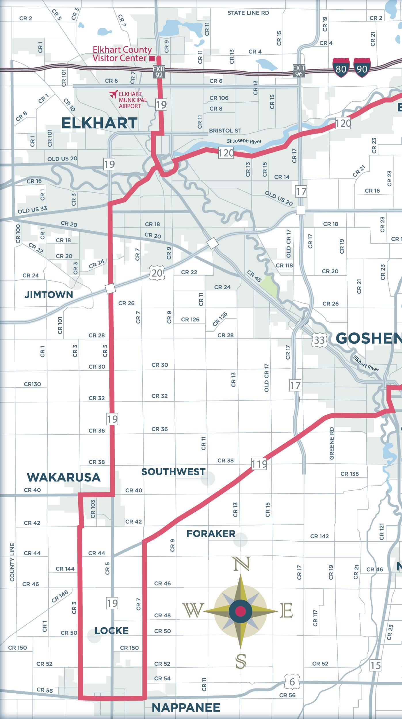 Map courtesy of Elkhart County Convention & Visitors Bureau