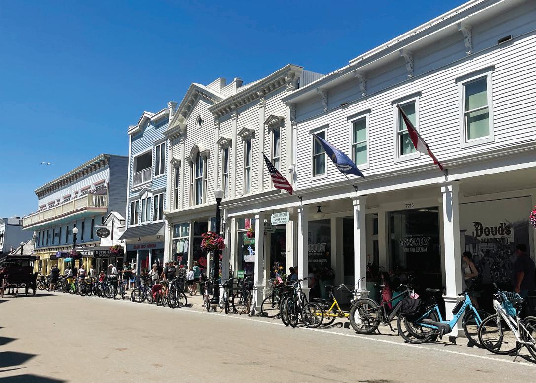 Main Street on Mackinac Island is home to a number of cute shops, fudge factories, bike liveries, hotels and restaurants.