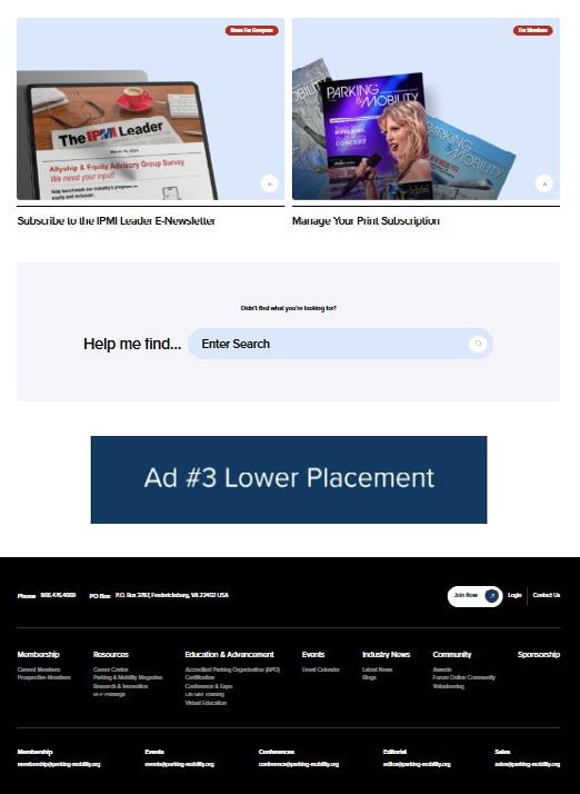 The IPMI website is one of the first places parking, transportation, and mobility professionals go when they’re searching for practical information, proven tools,and innovative products and solutions. Placing your ad prominently on parking-mobility.org will increase your industry visibility and help you achieve your organization’s marketing and sales goals.