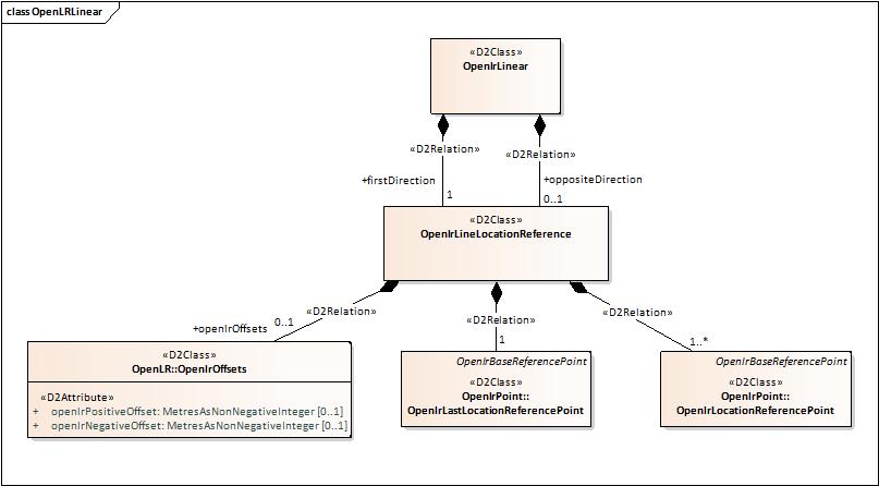 OpenLR is a widely used license free location referencing approach used in the ITS/Highways sector. Profiles of it appear in several ISO and CEN standards. For more information see: http://www.openlr.org/ Figure 53 shows a UML class diagram for OpenLR.