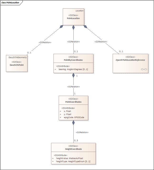Location is an abstract class, see Figure 47. Location class model that groups together the different location referencing methods, which in turn provide several ways to define: