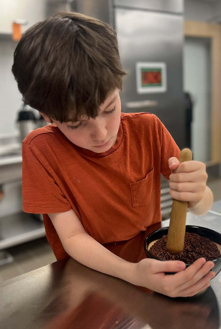 Using the new teaching kitchen, students prepped the raw cocoa beans, ground them down, worked out the ratio of sugar and milk needed for their unique bar, and tempered and poured their bars to be wrapped and enjoyed. The new space gave students the chance to work with commercial kitchen equipment and gave them an enhanced look at the production process!