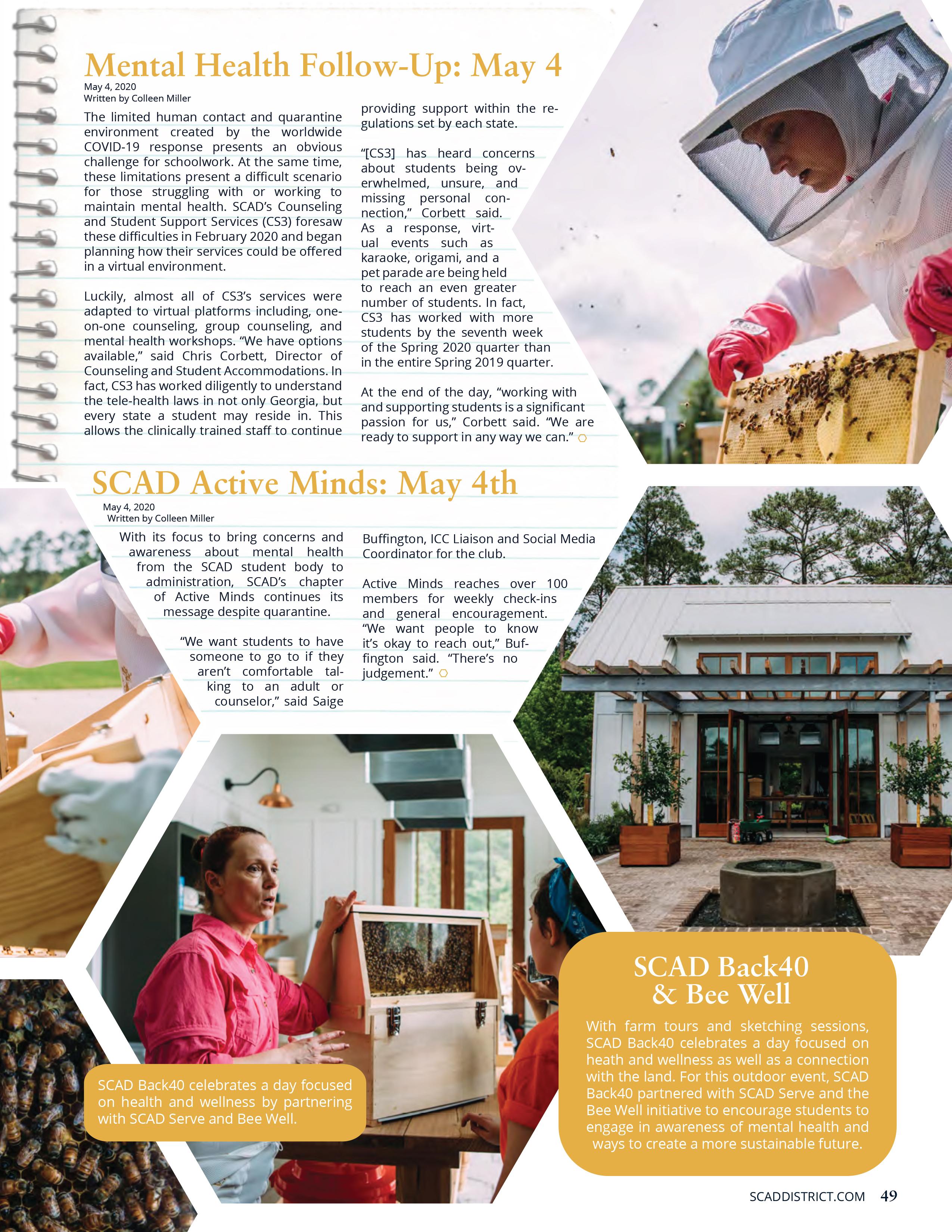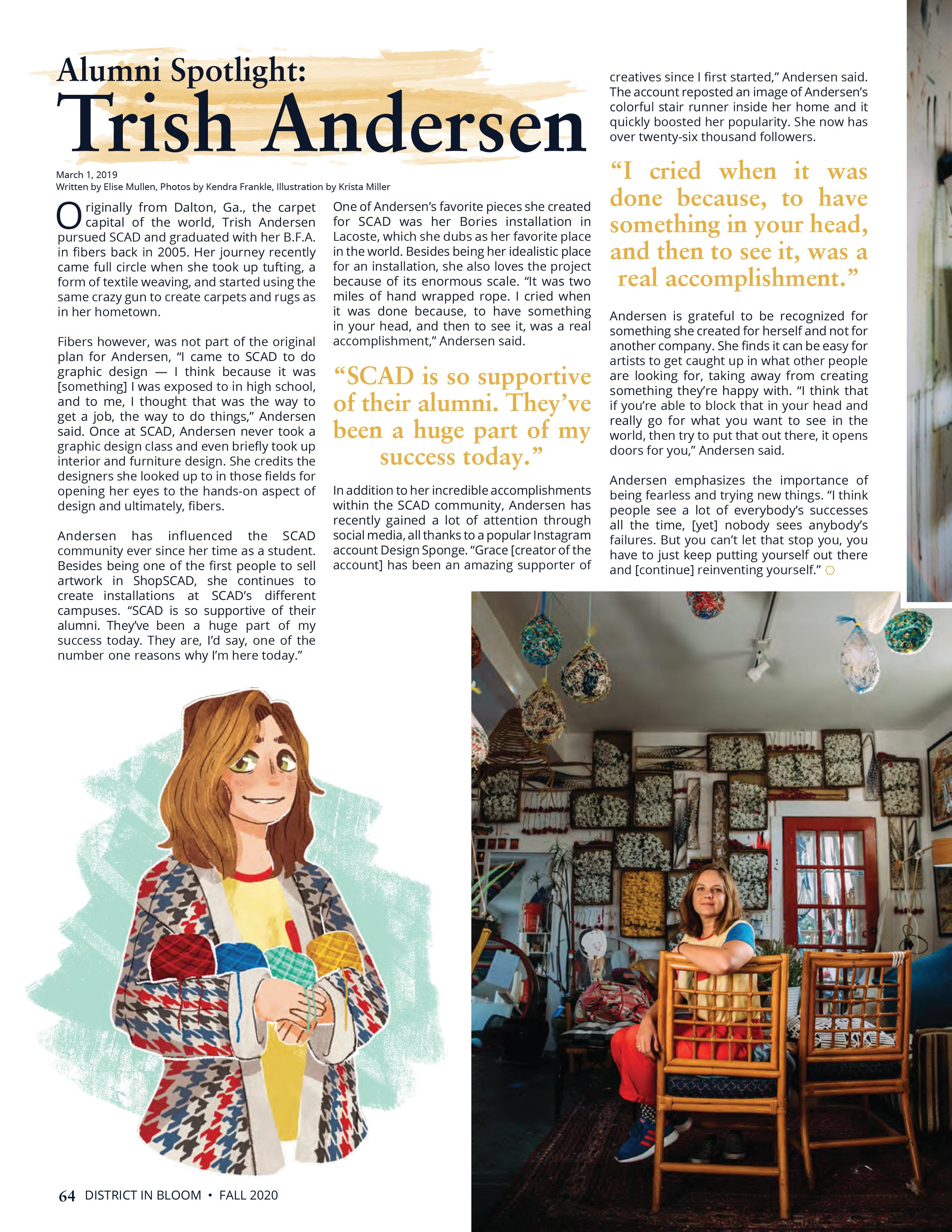 The most expansive of Kefalas’s SCAD collaborations took place at District. Kefalas sought out student journalism immediately; attributing it as the bedrock of her social life, the drive to excel professionally and academically. Kefalas attended an interest meeting, then every subsequent session that followed. Over the course of three years, efalas worked up from a sta writer, to assistant assignment editor, to chief assignment editor, to ending on a high note as editor in chief.