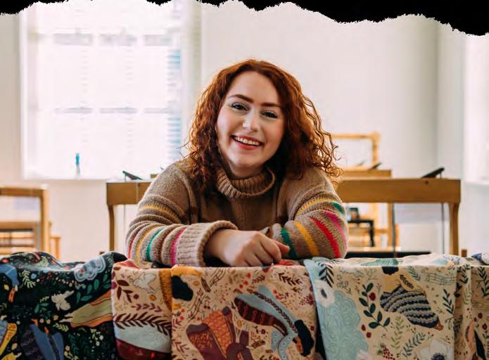 Not many people come to SCAD thinking, “I m going to major in fbers, because not a lot of people know what it means to be a fbers major, or even what fbers is. ike many SCA students, Abby, a fve-footnothing girl with a heart bigger than her body, began her journey at SCA as an Illustration major. Although Abby came to SCA with an illustration in mind, she has always been drawn to embellished and colorful textiles.