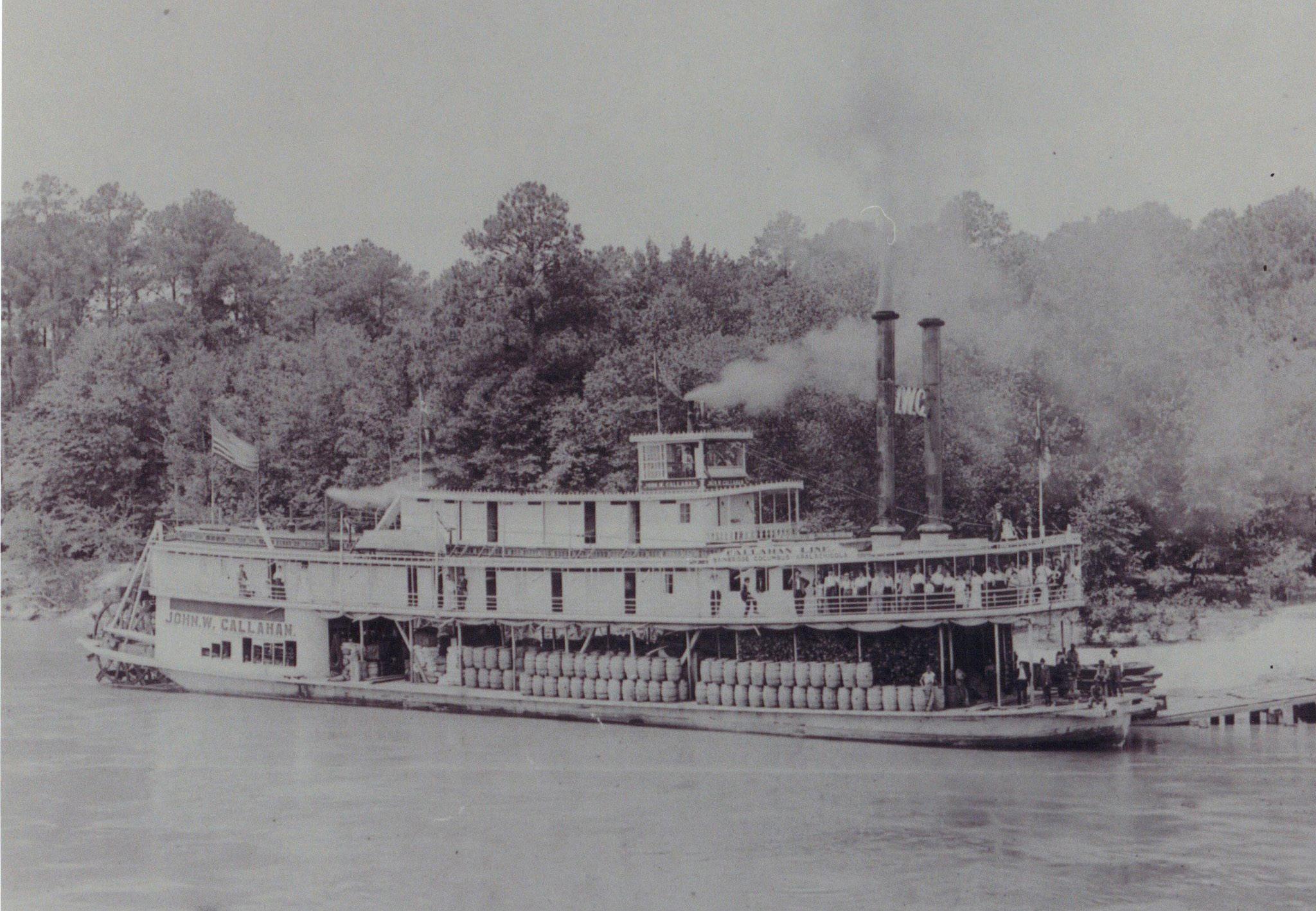 On Wednesday, March 3, 1540, the expedition set out from the present Tallahassee vicinity and in one day, crossed the Gauca River (Ochlockonee) and two days later reached the Capachequi (Flint River) at or near the present Bainbridge. The record states that the stream was very swift. To cross it, they built a piragua (barge) and, to use the narrator’s words, “... they took the chains in which they were bringing the Indians, and with some ‘S’ hooks of iron fastened them together and made a chain of them all.” With a windlass of ropes and holding on to the chain, the crossing was affected, the horses being pulled along by long ropes, although some were half drowned. Modern cities and towns in Georgia