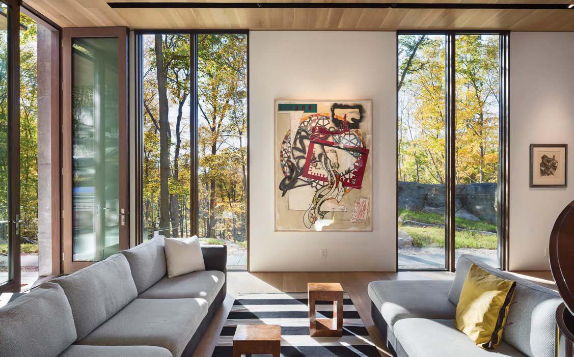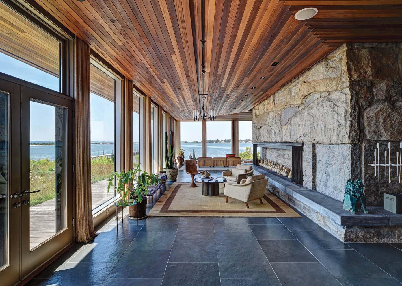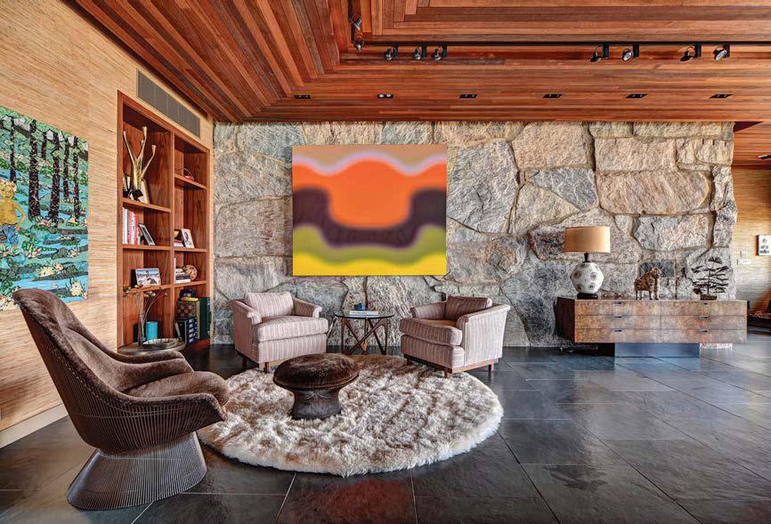 An eclectic living room at 2 Charlies Lane, Shelter Island.