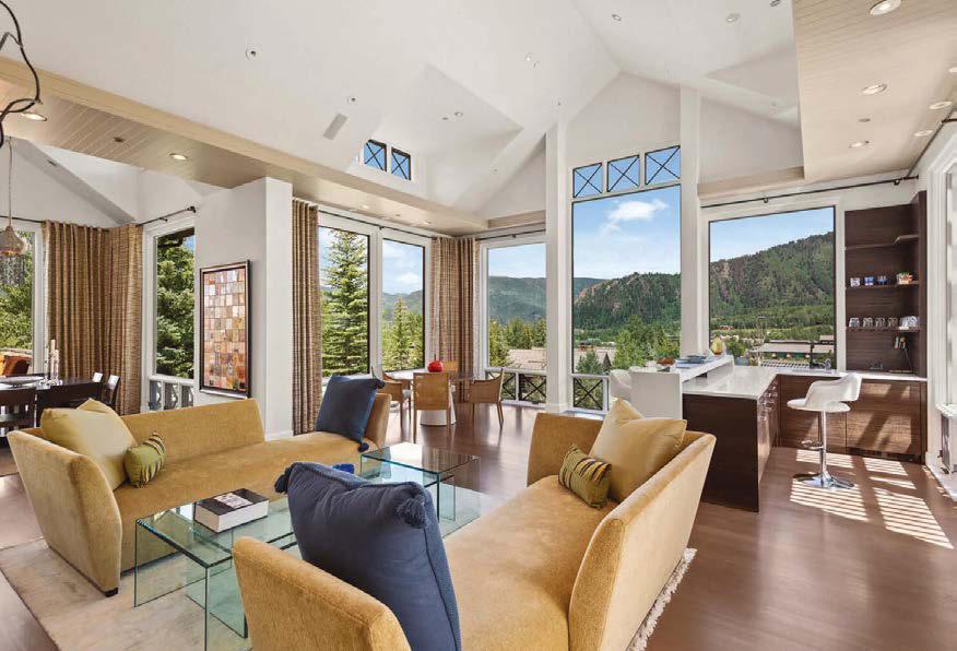 ASPEN This 9,286 square foot home on over half an acre has space inside and out for the family to enjoy. Light and bright living spaces, a large indoor lap swimming pool and hot tub, and a wet bar off the outdoor deck for indoor and outdoor entertainment. Located next to the music tent.