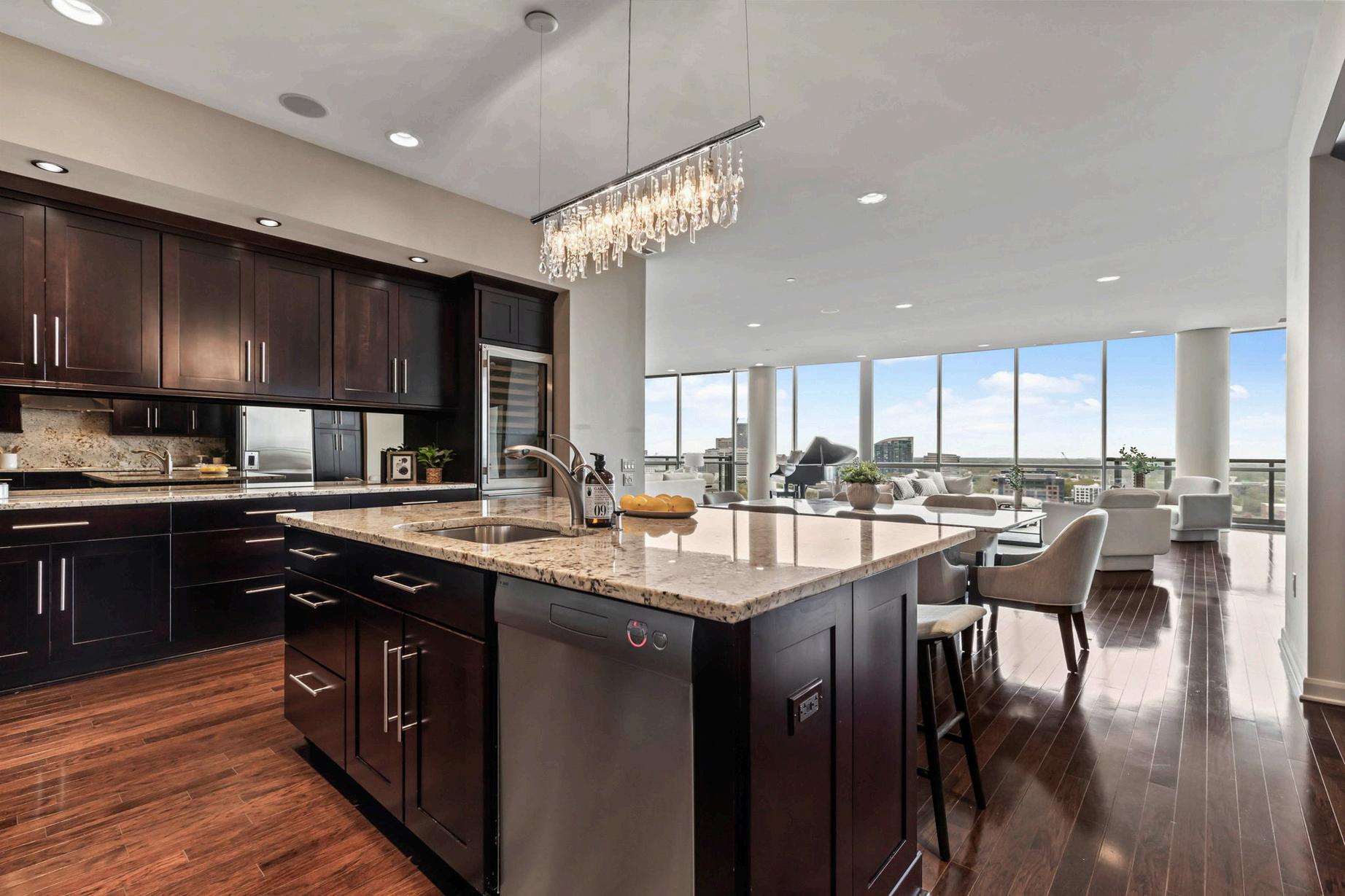 Luxury urban living awaits in this stunning 15th-floor condo, seamlessly combining two units in the coveted North Bank building of the Arena District. This exceptional home features an abundance of natural lighting and incredible cityscape views, three bedrooms inclusive of two primary suites with lavish en-suites, an office and a flexible workout room potential or 4th bedroom, of meticulously designed space for your enjoyment.