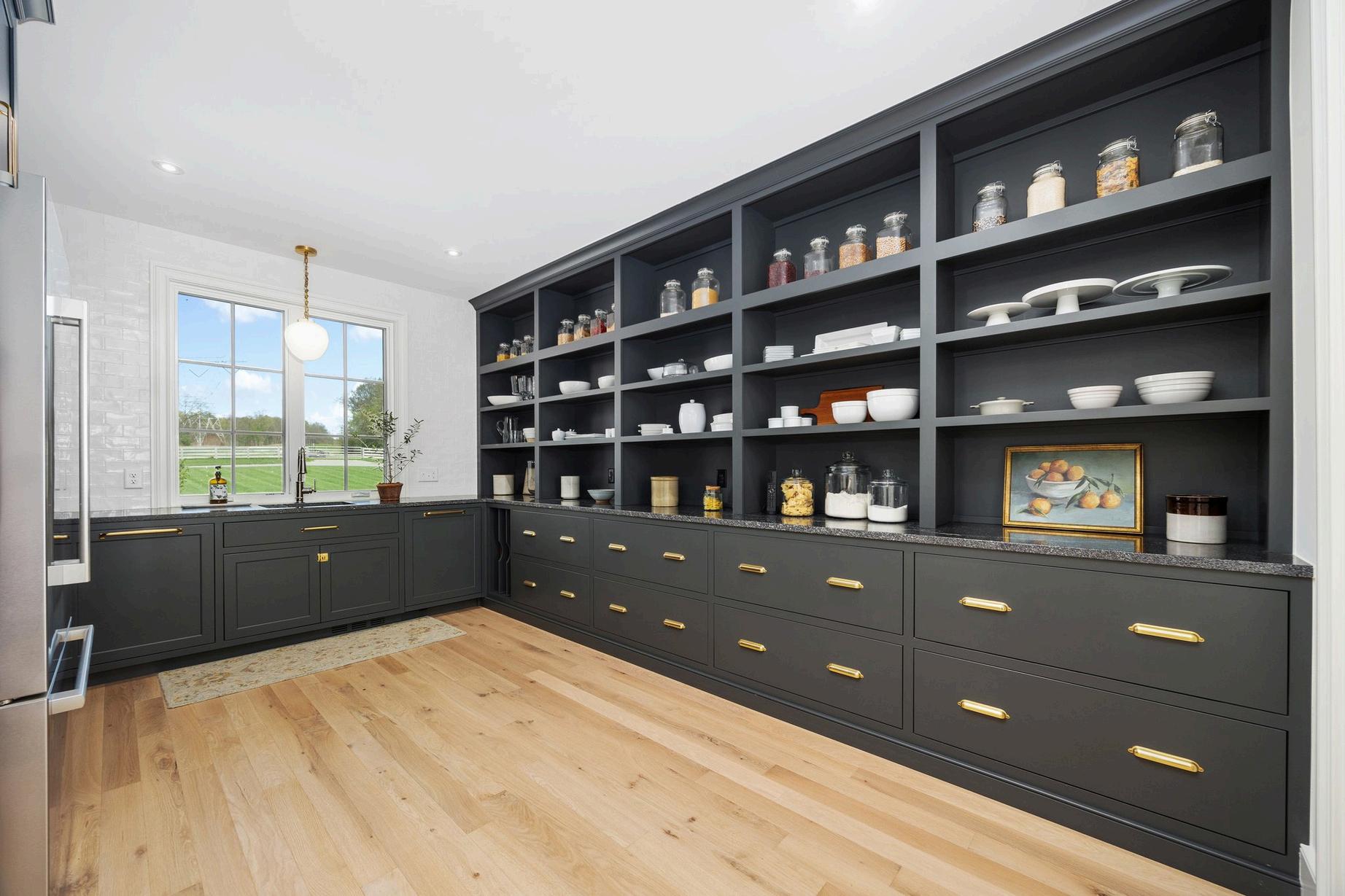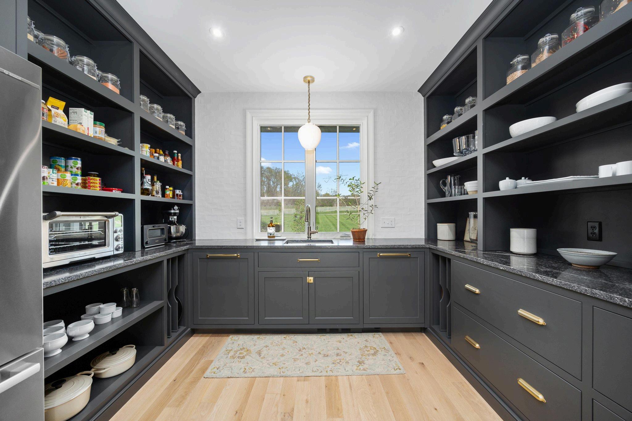 The pantry - Lots of open shelves keep all the things you need right at your fingertips and lots of large drawers keep all the not-so-pretty things tucked away. It provides ample counter space for food prep when entertaining guests and pocket doors that allow it all to be hidden away.