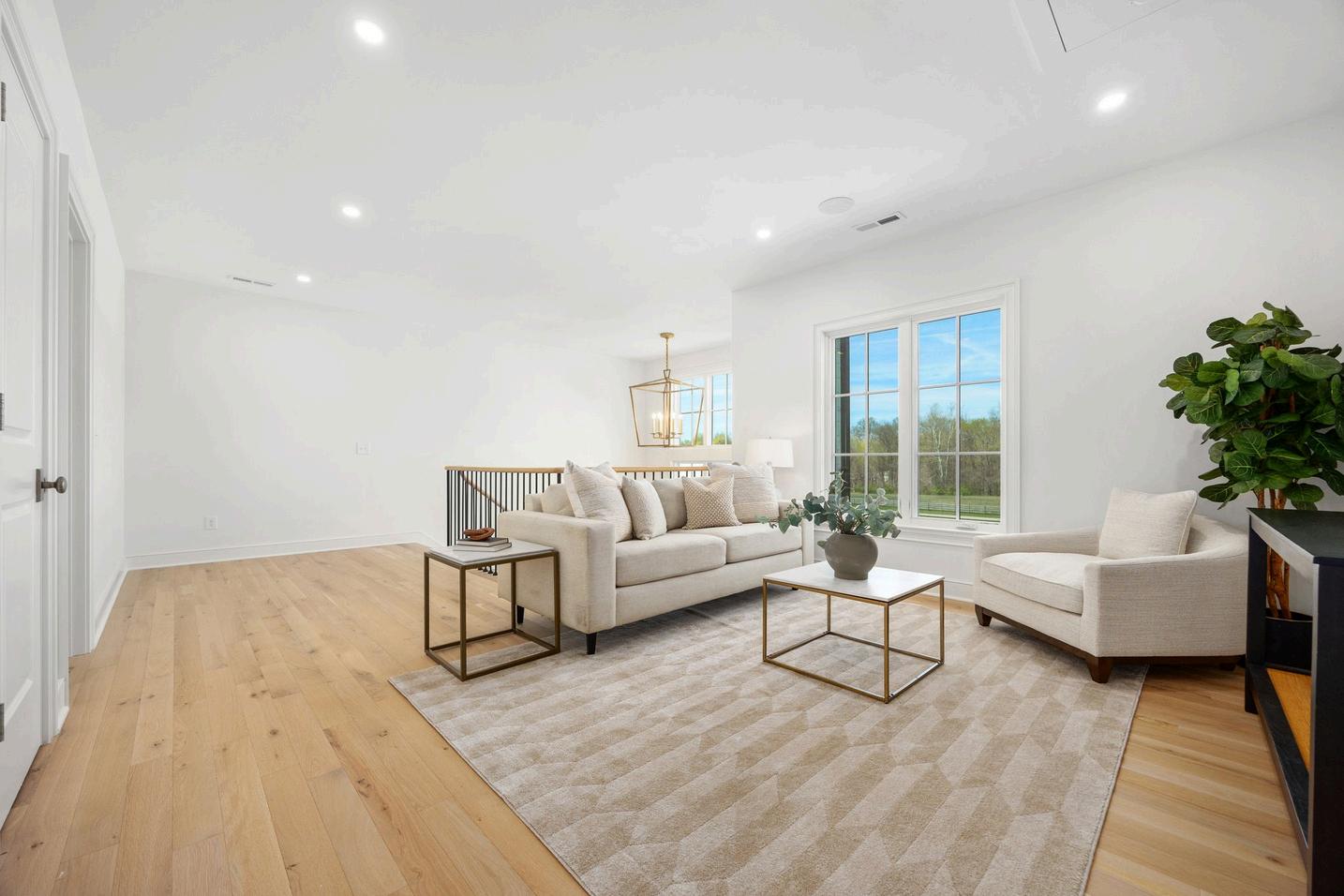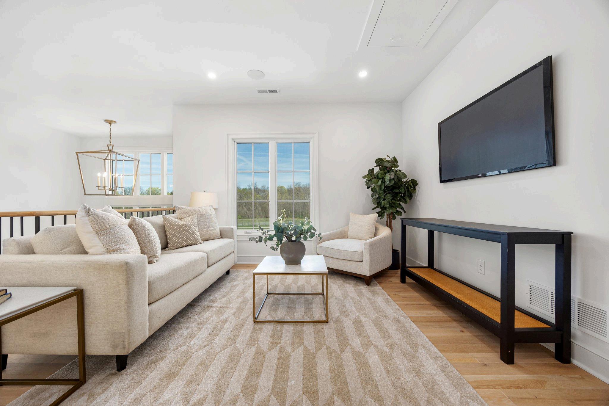 This inviting loft area offers a versatile flex space perfect for a cozy TV room, vibrant playroom, or productive office. Beautiful white oak floors add warmth & character, creating a bright & airy atmosphere. The open layout provides flexibility to tailor the space to your needs, while natural light enhances its welcoming feel. Whether you're looking for a spot to relax, work, or play, this stylish loft adapts effortlessly to fit your lifestyle.