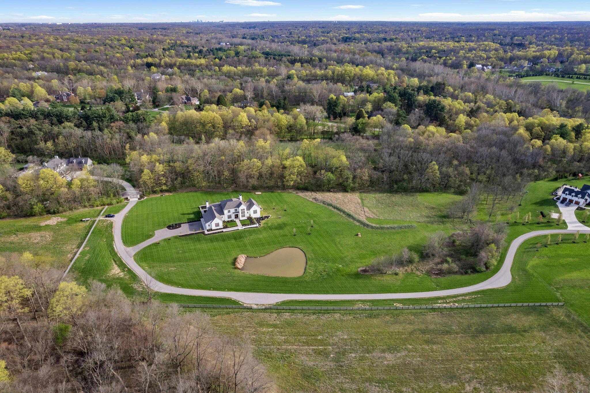 An incredible aerial view reveals this breathtaking nearly 8acre property, perched on a scenic hillside with a winding drive welcoming you home. The land features a peaceful pond & stretches gracefully all the way to the banks of the Olentangy River, offering endless natural beauty and privacy. The expansive grounds provide the perfect opportunity to add an outbuilding or barn ideal for a private basketball court, indoor games, or extra storage.