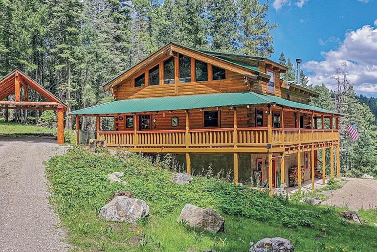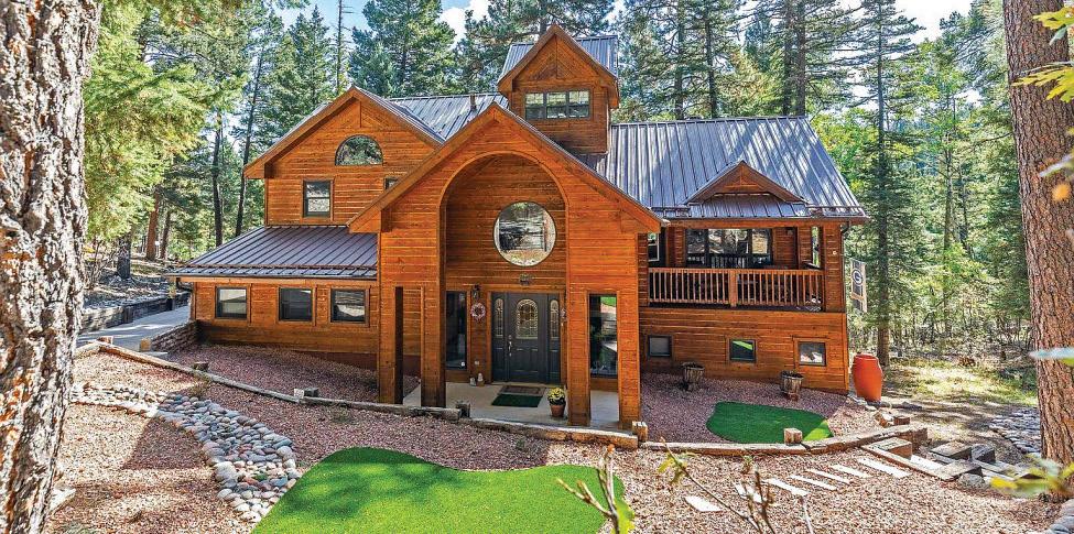 2979 US-Hwy 82, Mayhill, NM: This charming mountain log-sided home offers a perfect blend of rustic elegance and modern comforts, nestled on a sprawling unrestricted 6-acres that backs directly onto the stunning Lincoln National Forest. With 3 spacious bedrooms and 2 ½ baths, this residence is ideal for families or those seeking a peaceful retreat. The main living area features high ceilings and large windows, allowing natural light to flood the space and providing amazing views of the surrounding forest. Open, covered and enclosed decks expand your space to relax and enjoy your peaceful surroundings. Horses allowed and a barn/corral area is already in place. In addition, a large metal workshop provides ample space for projects, hobbies, or storage. MLS# 170022. $769,000.